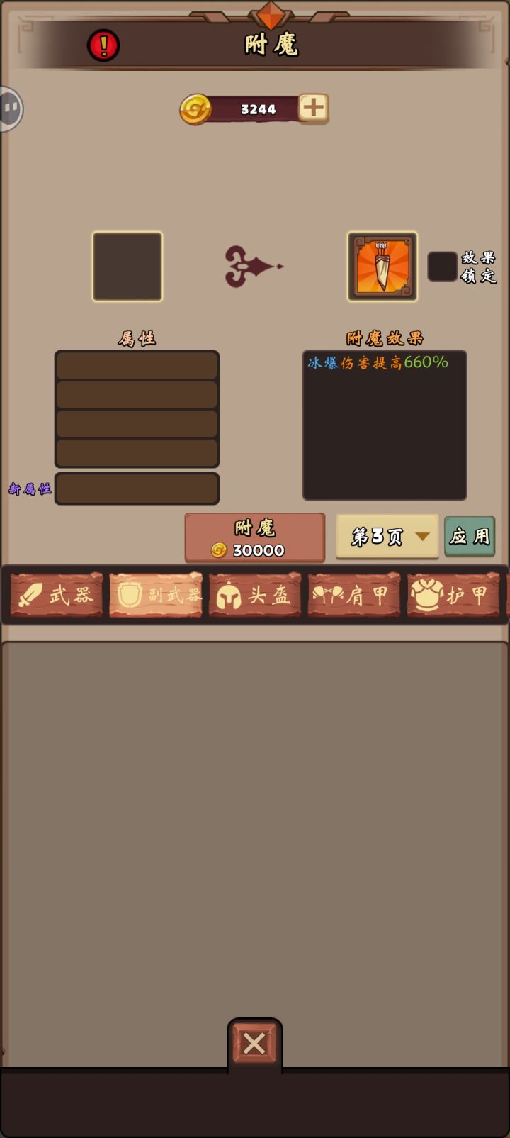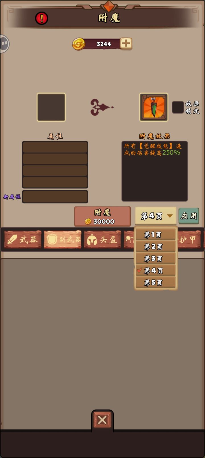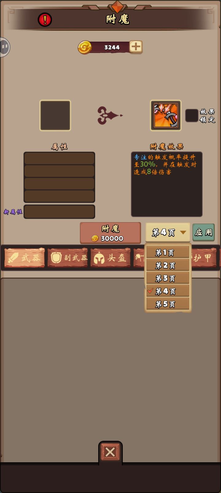 一 、背景1、主武器第三个技能是加暴击率的,第四个技能是专注概率的。2、副武器第三个技能是冰暴的,第四个技能是觉醒的。二、bug表现比如,我希望主武器附魔技能在使用第三个技能:暴击率,但无论点应用还是锁定,都没用;只要在副武器或是其他部位,选的不是第三个技能,比如,我选为第四个技能觉醒时,主武器的技能在跟着变化,由暴击率变为专注。