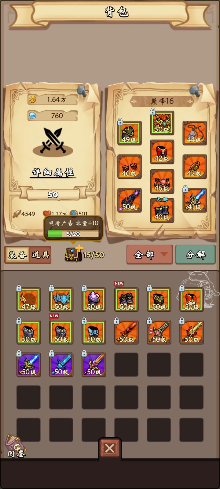 背包容量到底怎么增加呀,点哪看广告啊,点了没反应啊