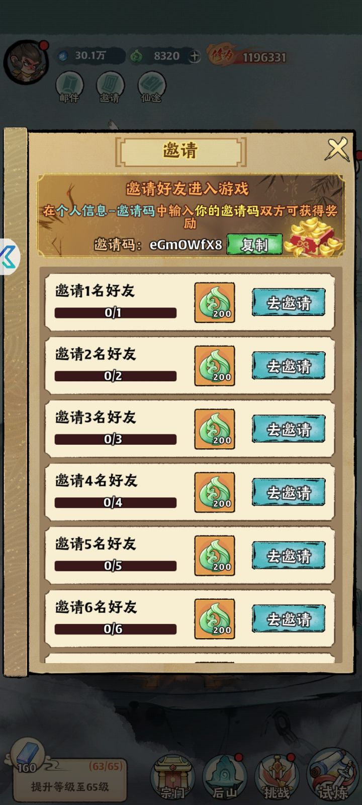 开局点击头像输入邀请码eGmOWfX8就能领取200玉了简单高效快捷