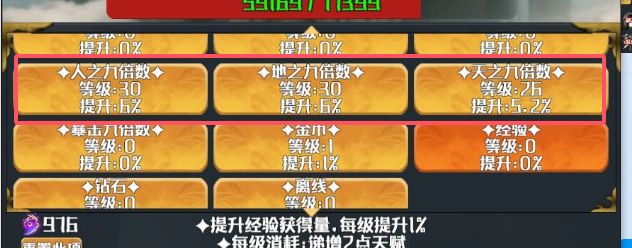 天地人爆不适用于前10w层;选择天地人甲冲10w层; 1. 加点分配:前期在加点设置中将甲、天、地、人平均加点,血量和暴击不点。靠四个头,四个翅膀爬10w层拿到神器,后续可以100%开打,到时使用天地人爆2. 神器碎片收益最大化(卡神器):先将所有已升级的神器等级返还,全部加在重生笔记上,关掉点击手和自动转生,然后降低难度,再提高难度,此时吃到了笔记加成,等级为1级,然后将笔记加点全部返还,