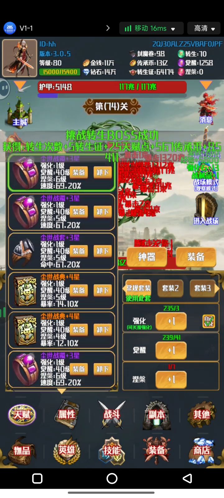 #发现好游戏 #灵域转生放置 #放置游戏 #放置挂机 首先先夸下作者大大,该游戏无任何广告!!!!上班族肝帝都可以入手! 先进群领福利,有大量钻石足够应对前期花销,前期就是无脑转生,不要追求高难度,怎么打的快怎么来,在左侧离线收益可以看到多少秒一次,前期大概挂到一千转生,恭喜你,可以开始做装备了,不建议在前期的小BOSS浪费太多钻石,刷到一件基础能用就行,继续挂,刷转生直到可以打首领,会直接掉一