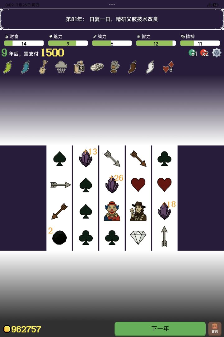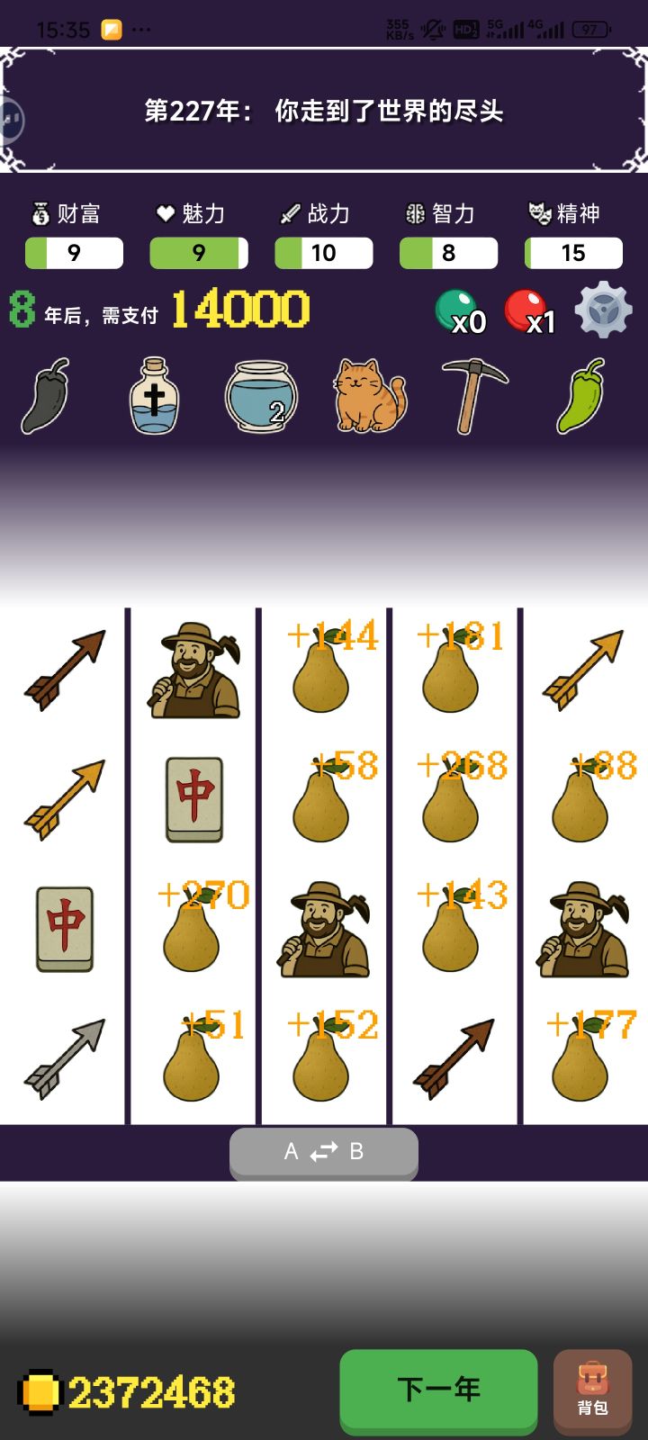 SL6战力开局,走赛博世界,第六年留在贫民窟,18年6魅力6战力选肉体改造得赛博猫。 前期攒钱,买牡蛎铺满珍珠攒15魅力,赚钱熬到15魅力,最好的赚钱手法是刷一个水族箱,珍珠自己赚钱。 中间买一个青蛙,有猫买猫,有伪人买伪人,有伪人就把其他人卖了等女巫。 这套成型后女巫会给青蛙一个系数,水族箱会给青蛙一个基础的底数,猫中会拿青蛙做底来×女巫和道具的系数,猫中依次乘起来,一转就能打破上限。 具体需要
