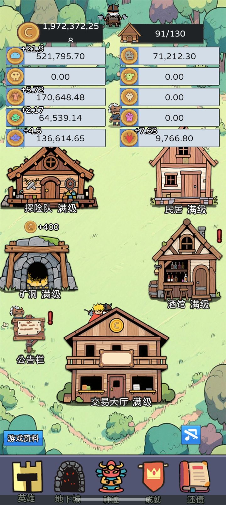 一两天通关,主要玩法低买高出,交易大厅优先升满,史莱姆币涨幅倍数最大。开始升级设施,后面大部分钱去买币,少部分升级设施。英雄作用小,看喜好有就行。交易大厅可以修改价格预买预卖。