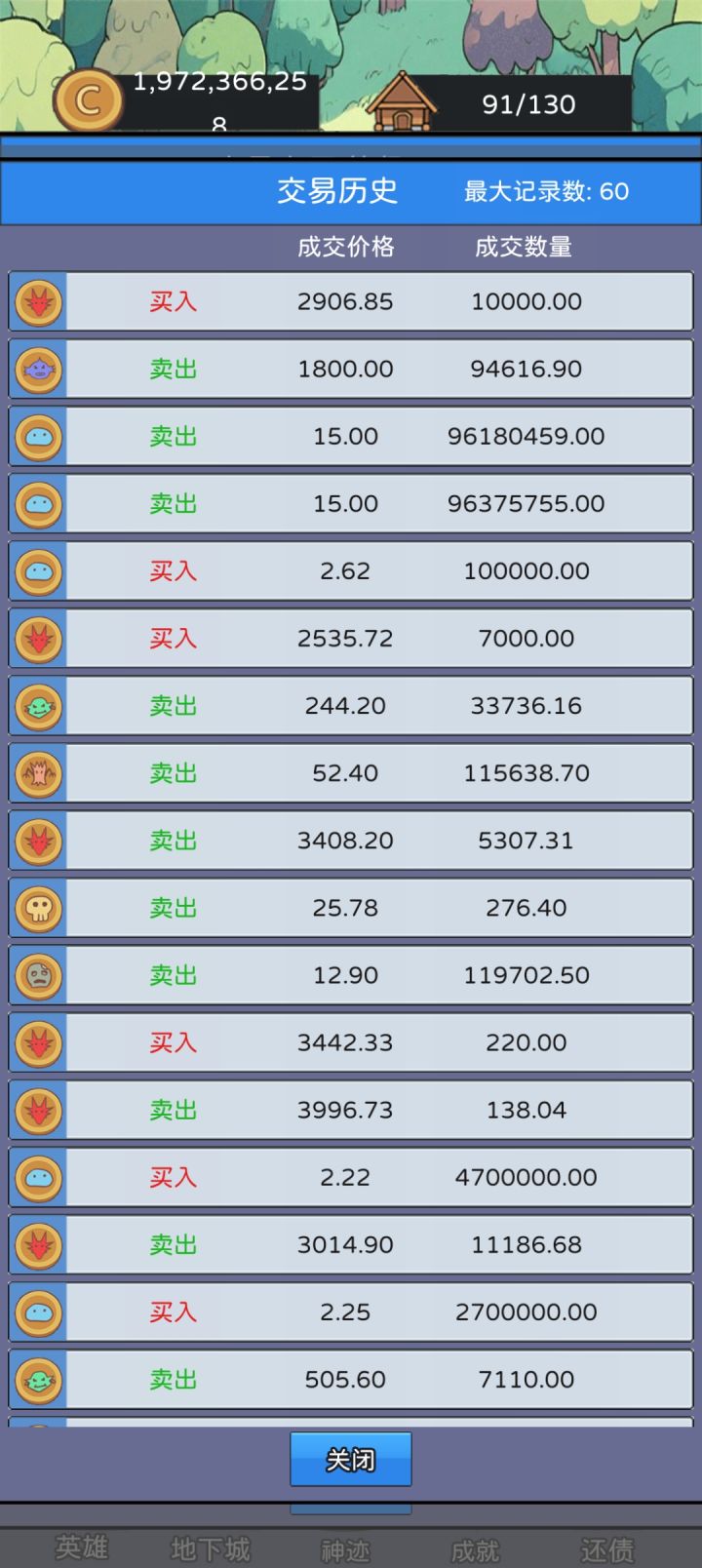 小技巧:在交易所里卖出或者买入魔物币时,并不一定要按显示的价格购买或者卖出。卖出时可以适当出高一点的价格,这样交易会挂在交易所内,等到价格涨到了你所挂出的价格会自动卖出。买入也时同理,可以低一点价格买入,当魔物币价格降到了你所挂出的价格会自动买入。前期一定要先把金币收益和离线收益先点上来。毕竟睡觉都有更多钱拿是最爽的。而英雄最高等级则可以放到最后再升级,毕竟前期根本升不到最高级。酒馆里雇英雄
