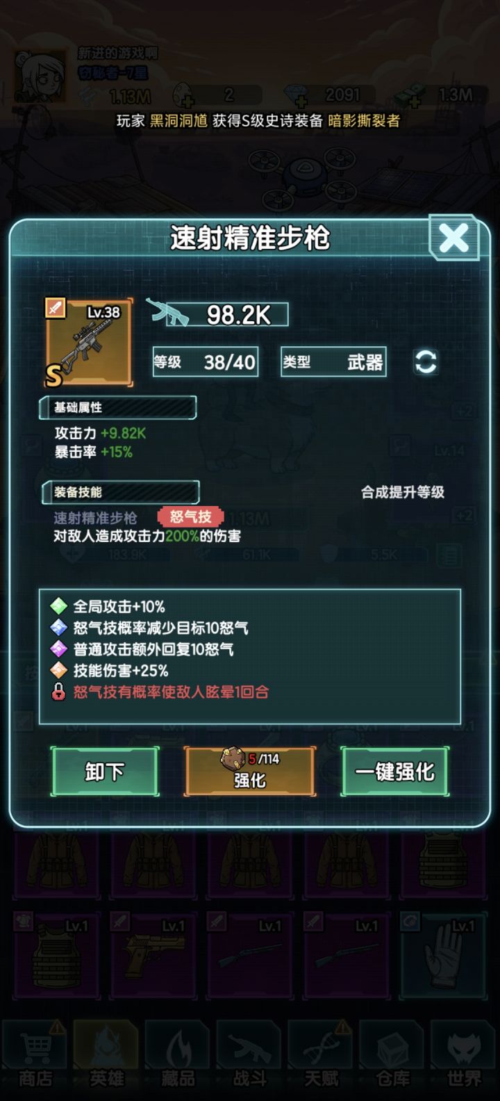 主页镇楼,本人开服第一天开始玩,至今开服九天,总时长50h+,最高榜三,现在榜前十,接下来为后入坑的萌新们仔细谈一下本游戏从提升战力,到打关推图各方面,助大家更快提升【如何提升战力?】战力其实就是衡量你的攻击,生命,防御的数值,其他的技能伤害,暴击,减伤等属性不计入。所以很多提升攻,防,血的词条能加很多战力,而一些加增伤,加特效的装备,则提升战力较小。提升战力最主要的方法,就是装