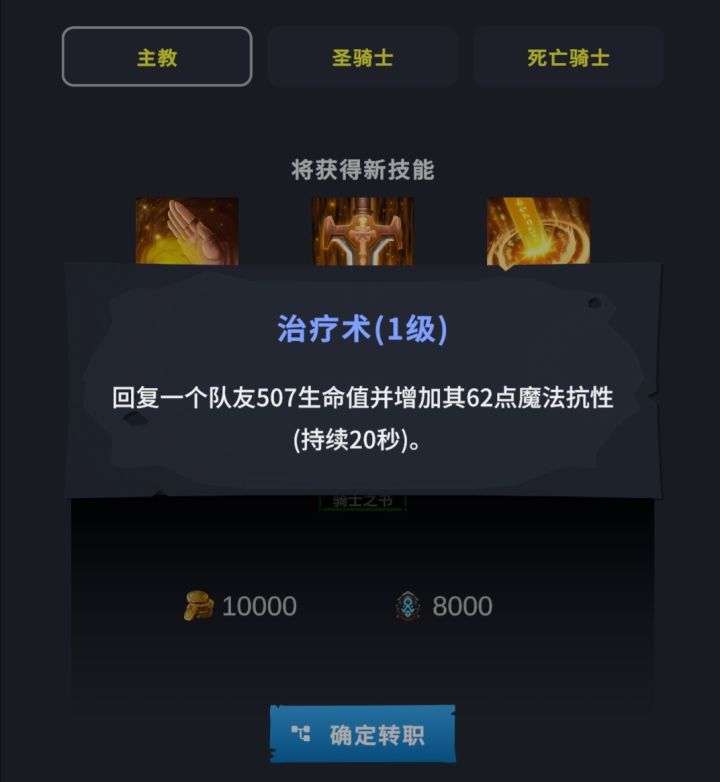 英雄职业转职分布(目前版本的情况下):职业名 可转职业(职业定位、特点)战士:1,狂战士(物理输出) 2,守卫者(绝对的肉盾T0级) 3,魔剑士(力法双属性法系输出)法师:1,火焰法师(法系输出) 2,冰霜法师(法系偏控制输出) 3,雷电法师(法系群输出)牧师:1,光明牧师(单体治疗职业) 2,神圣牧师(辅助型群体治疗T0级,必备治疗职业) 3,审判者(辅助型)召唤师:1,恶