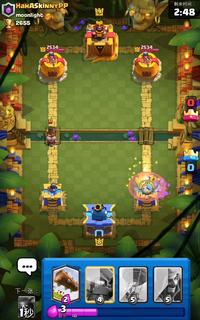 皇室战争:英雄卡弓箭女皇主动技能风筝斜线拉扯