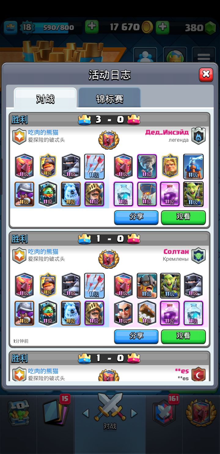 没有什么是一成不变的,近几个版本中,我明显感受到自己游戏战斗风格的变化,我变得更喜欢进攻了。加上游侠皮卡锤已经不再是版本强势,虽然用皮卡锤可以更高杯,但并没有感受到游戏的快乐,使用皮卡锤反而变成在用卡组等级压制对方,用着平均卡等10~12的炸弹矿在5000~5180来回蹦迪反而很开心。选择一份适合自己的卡组系列很重要,每个人的战斗风格都是在不断变化的,应该仔细的感受版本变化和自己的变化,及时在