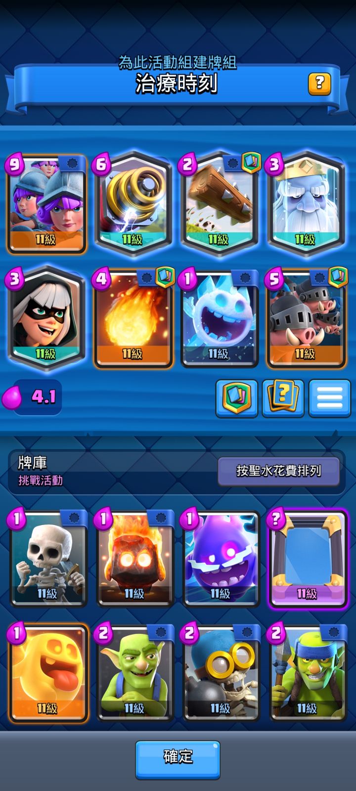 所使用的卡组并非固定的,最适合你的卡组是指测试中的版本最适合你的。比如说我,经测试最适合皮卡锤:皮卡超人、攻城锤、小电、刺客、电法、游侠、火球、幽灵,这套皮卡锤在至少4个版本前较强势,但这组皮卡锤中游侠生存能力有限,在近期显露颓势,我也一样感到难受,是我不适合玩皮卡锤吗?并不是,我的牌风偏向防守,皮卡锤的精髓所在就是防守后反击、双路进攻,这经过实测很适合我,虽然我并不喜欢三冲一守,但我使用皮卡