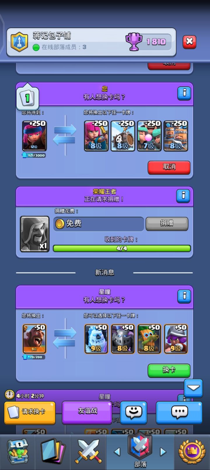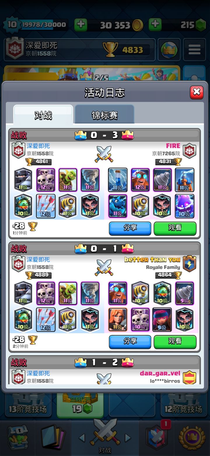 14阶竞技场上不去了,皇家塔基本等级高1-2级,我大部分卡在8-11,对面基本12-13级卡,根本没法打,苍蝇被雪球小电直接电没