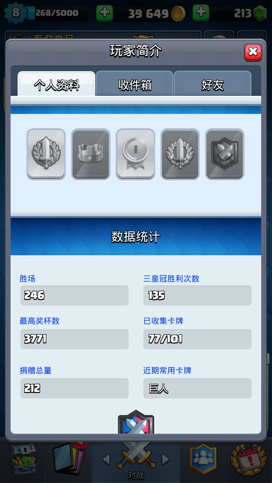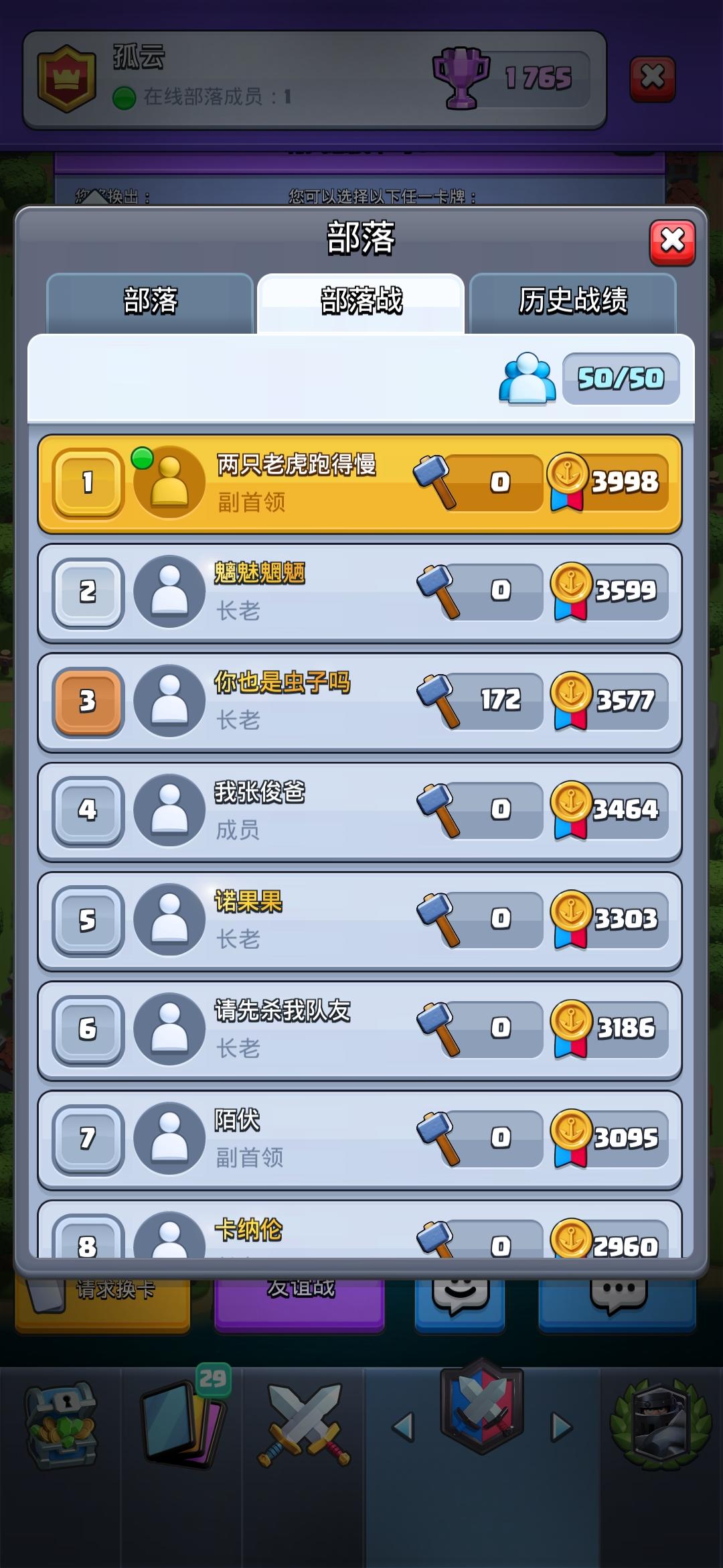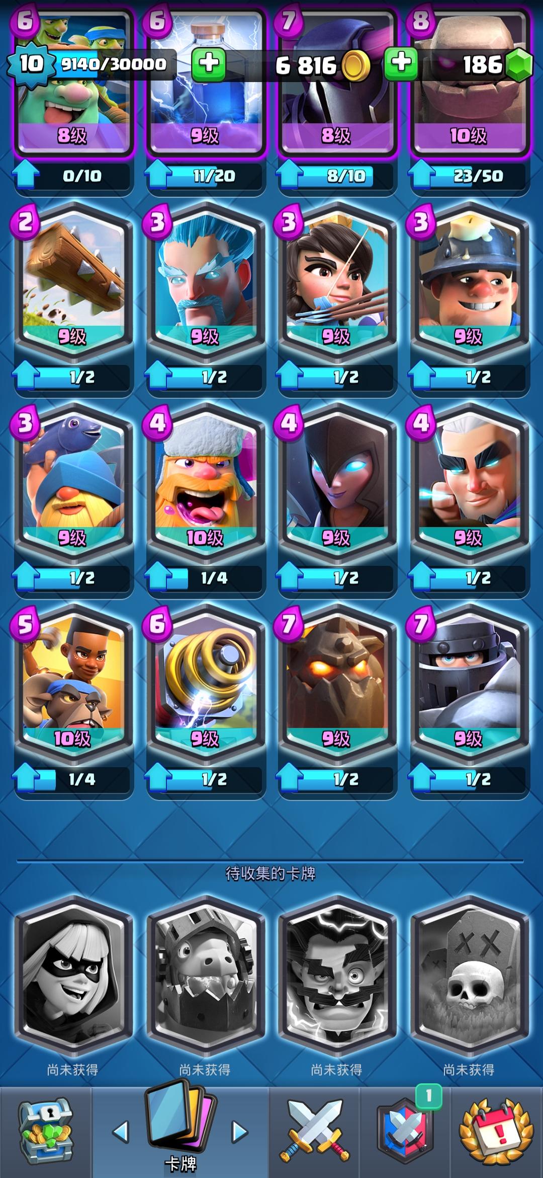 每天都玩,活跃玩家。月初入坑,目前4600+想找一个能拿传奇卡的活跃部落。应该可以凑出4套8-9级真卡组