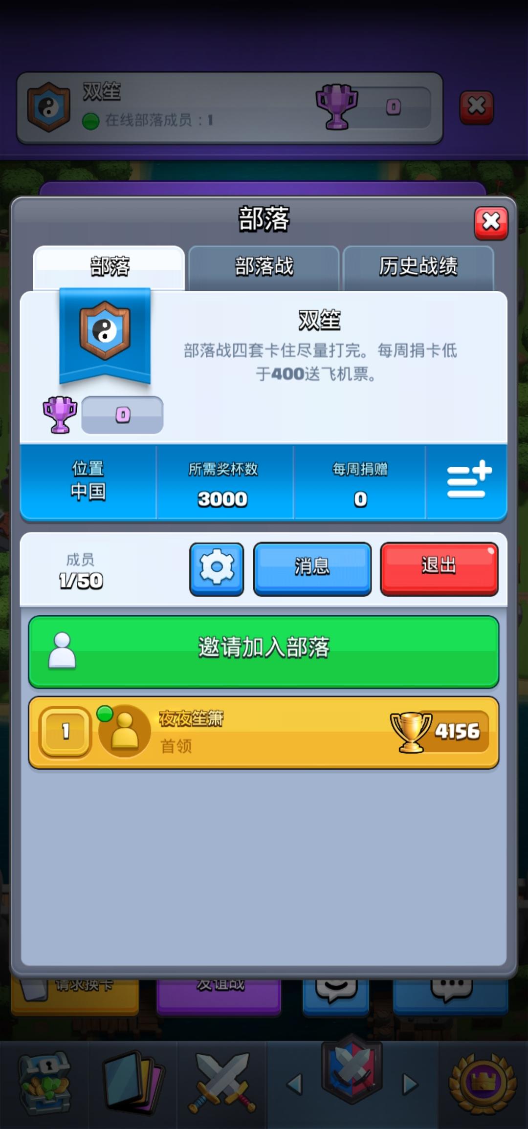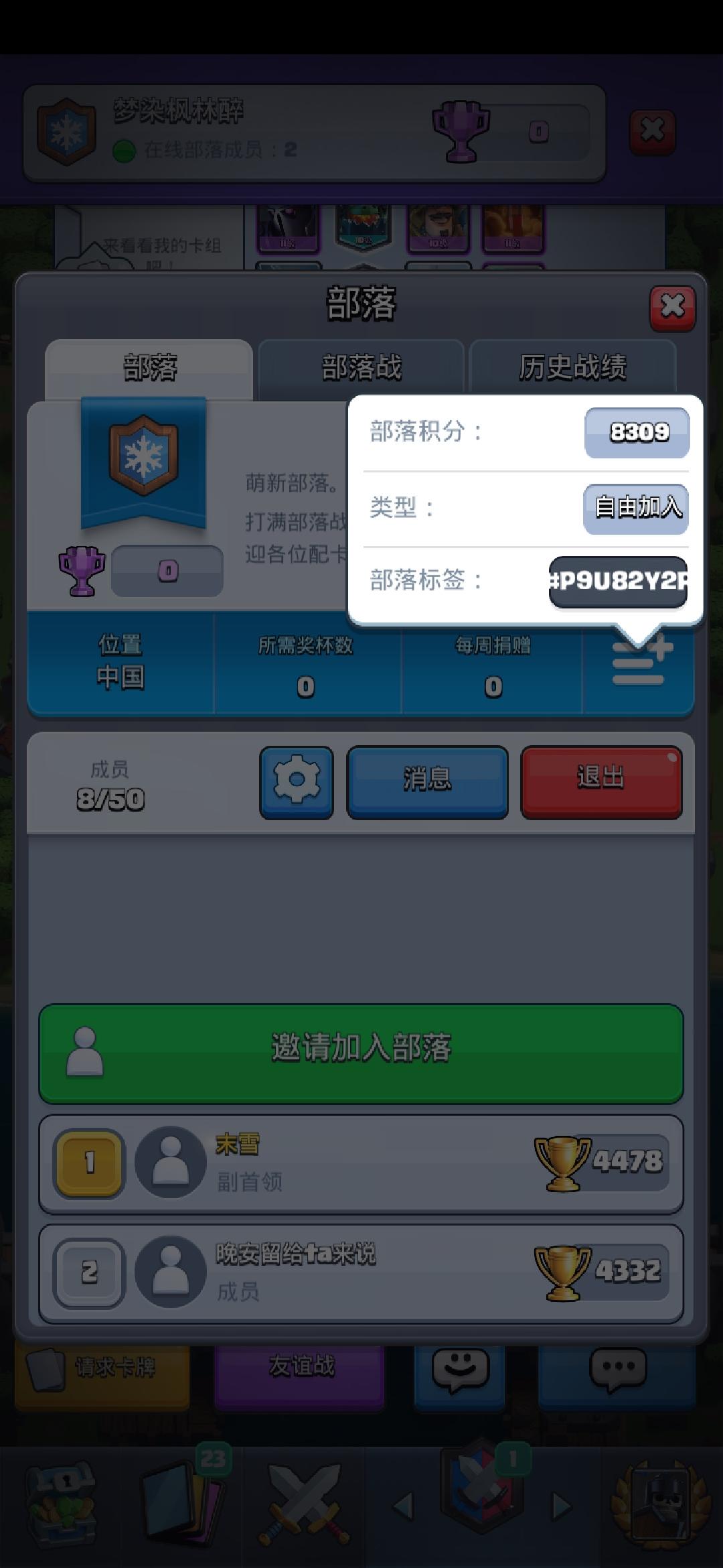 不管是0杯萌新还是7000+大神都欢迎,目前缺人打部落战,打满就能拿到传奇卡🤣