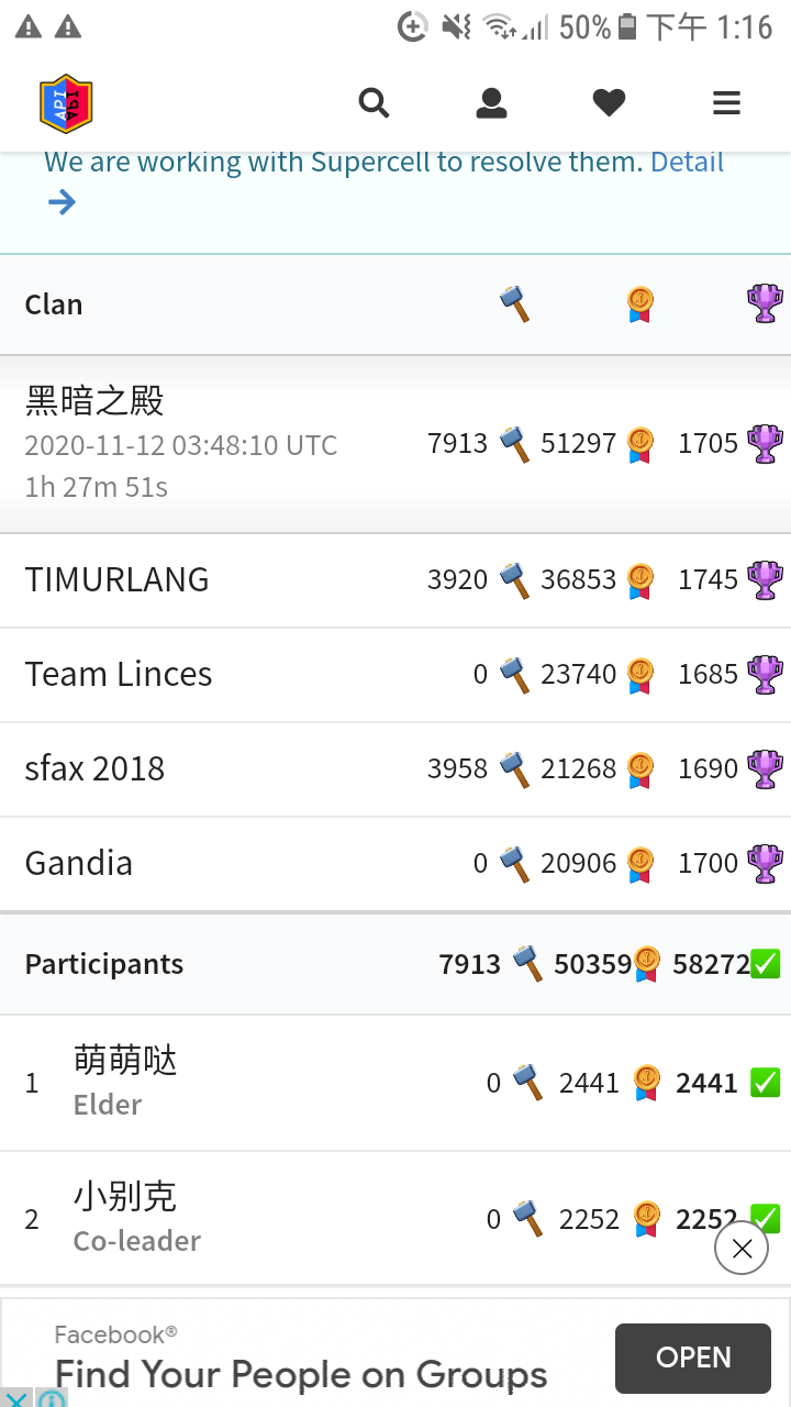 本部落今天12点成功冲线50000,部落名称:黑暗之殿,目前48人,每周部落战第1,保拿传奇卡,招部落战活跃玩家(每天按时上线打部落战)准守规则的人!!!!有意者私聊我微信号:jp10102007,安排位置给你
