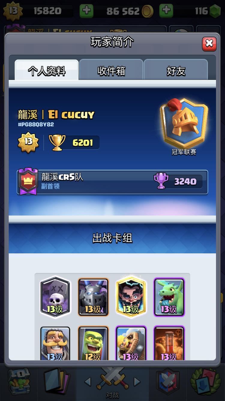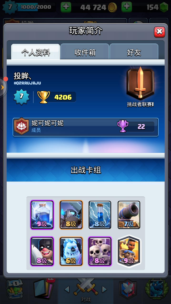 收历史5600+12本。常用部落战四套卡组卡等在11+以上。只收部落战活跃的小伙伴,原则上每周前三天每天四场必须打完。实在没有时间可以挂机。
