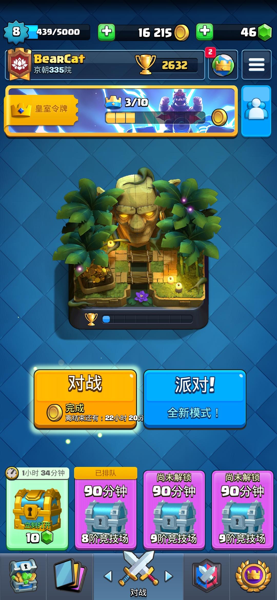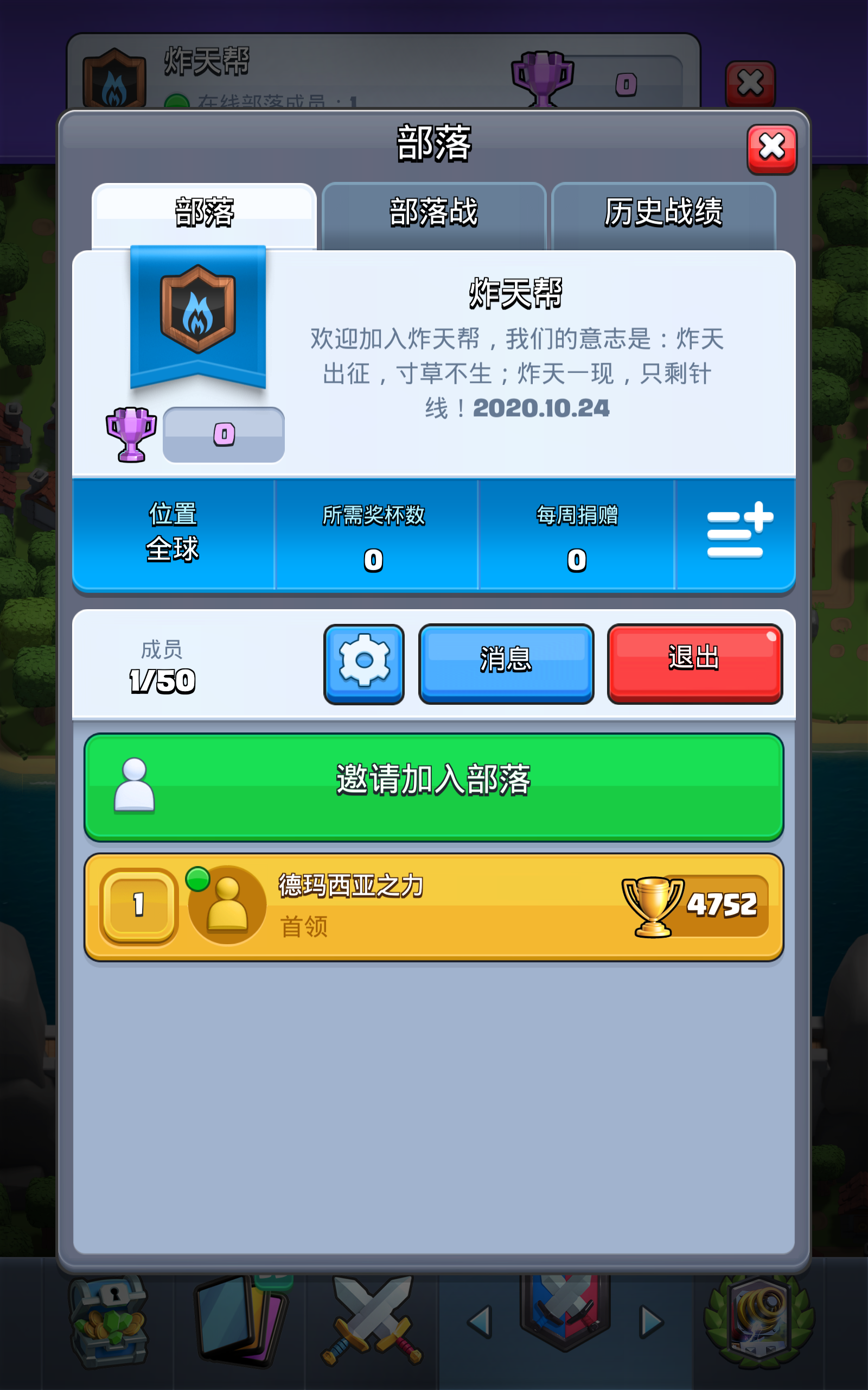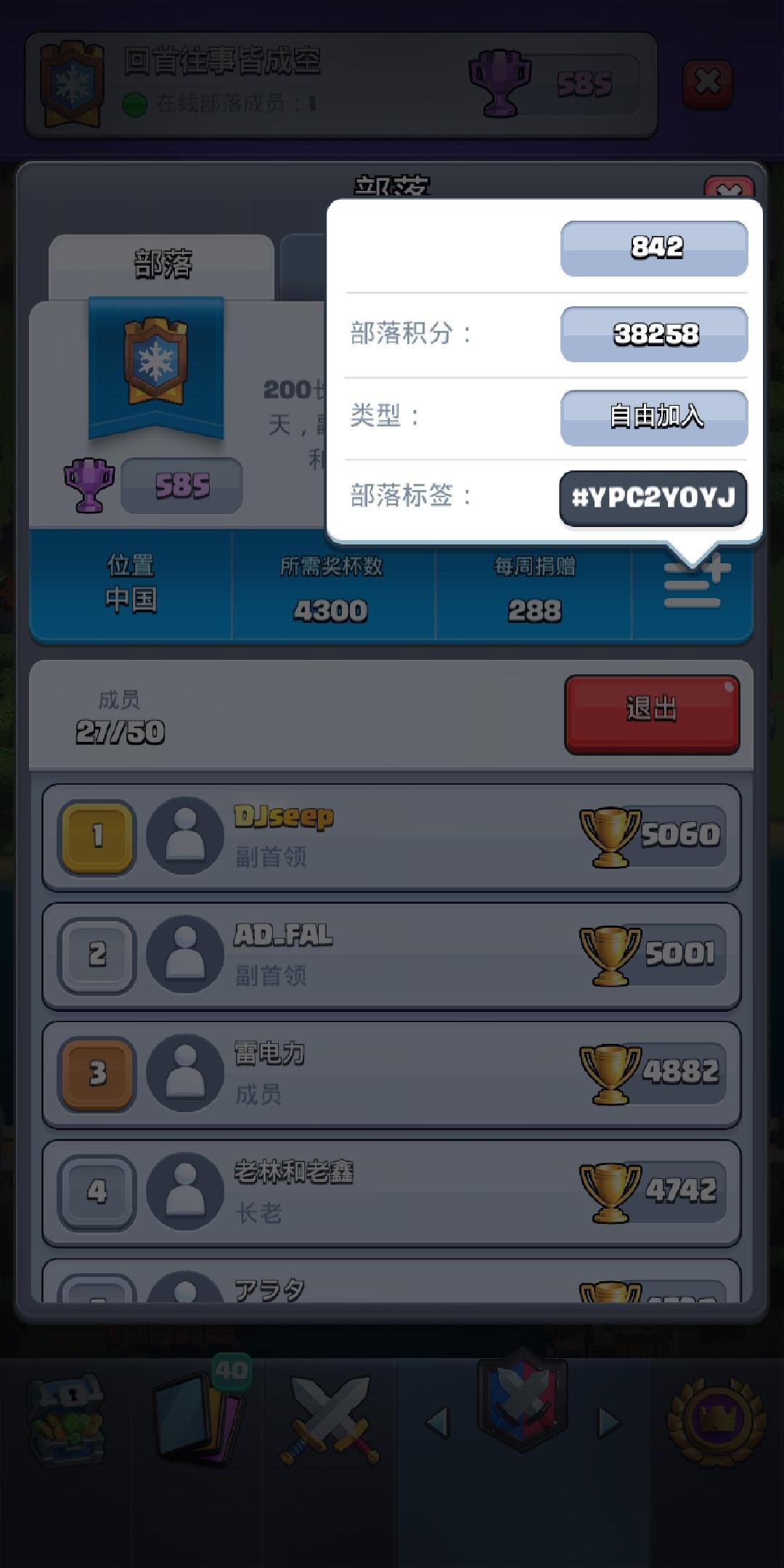 新玩的号,以前号最高4700杯,老号已经不玩了重新玩了个新号,找个能讨卡的部落发育一下,最好活跃点