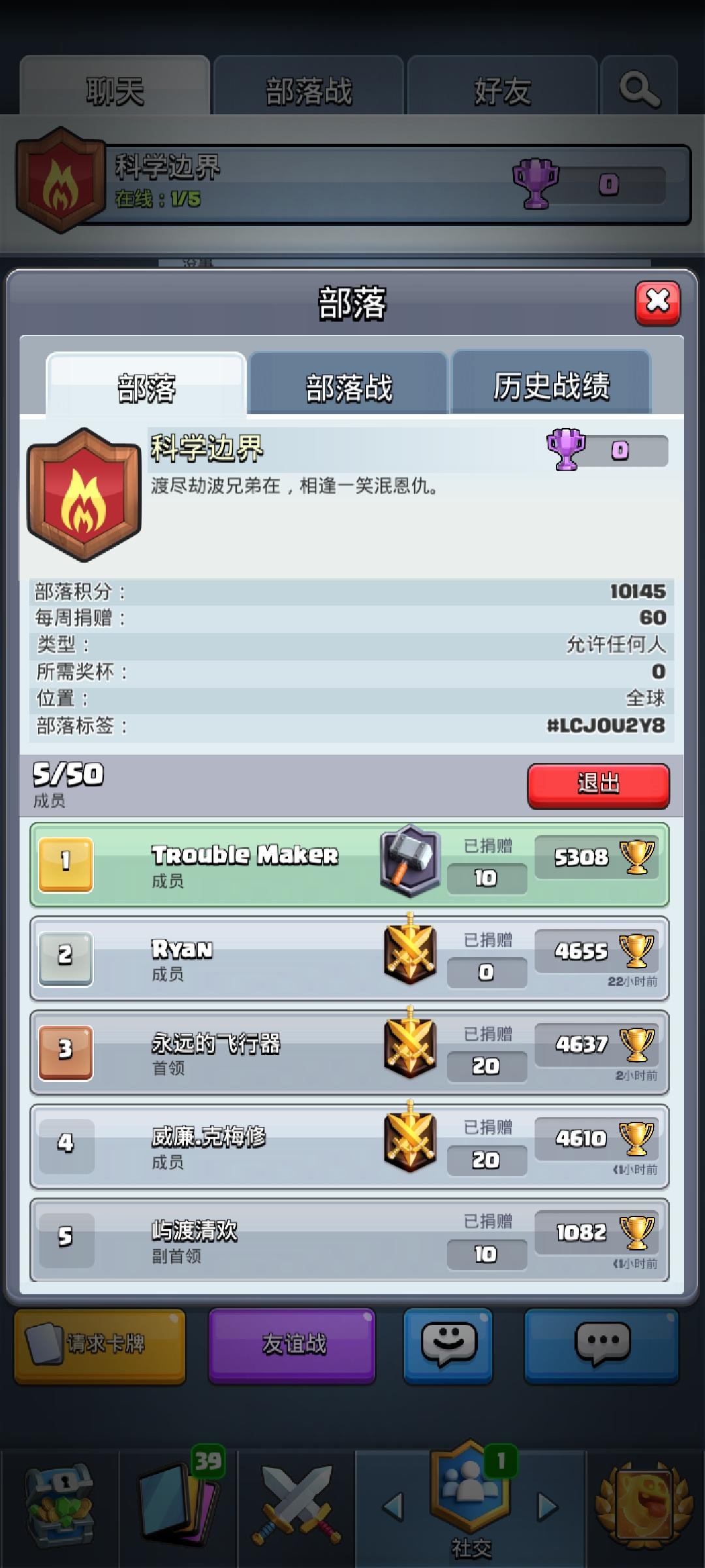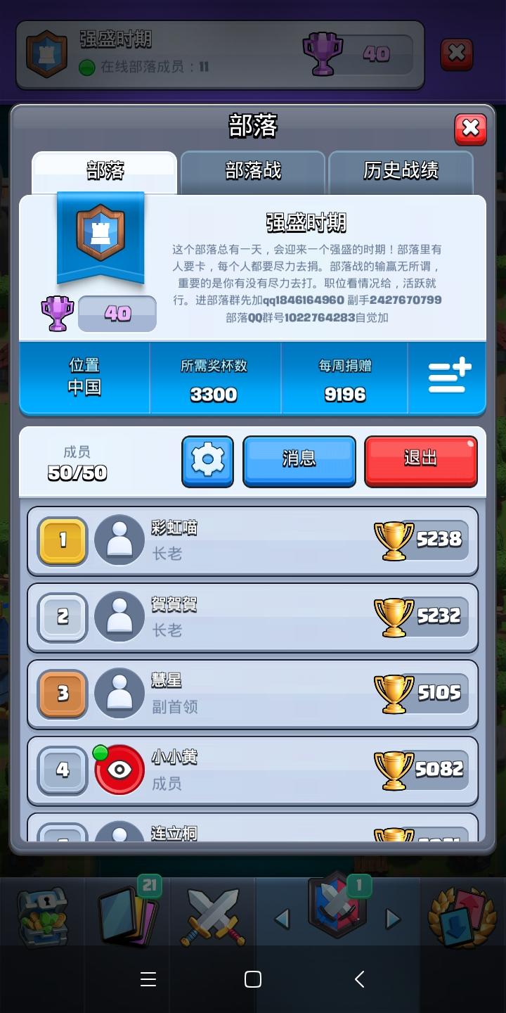 部落名:孤云你能得到啥?基本上每周稳定一张传奇卡!你来了要做啥?每天第一时间打完4次部落战,输赢不强求。捐卡收卡超级活跃!欢迎你来!记得看公告加群!部落名:孤云