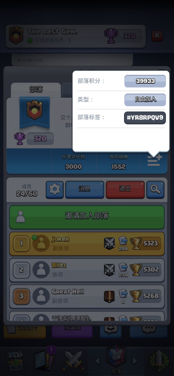 部落招人,要求活跃人士(7天不上线踢)部落里有大佬入住哦 门槛3000杯