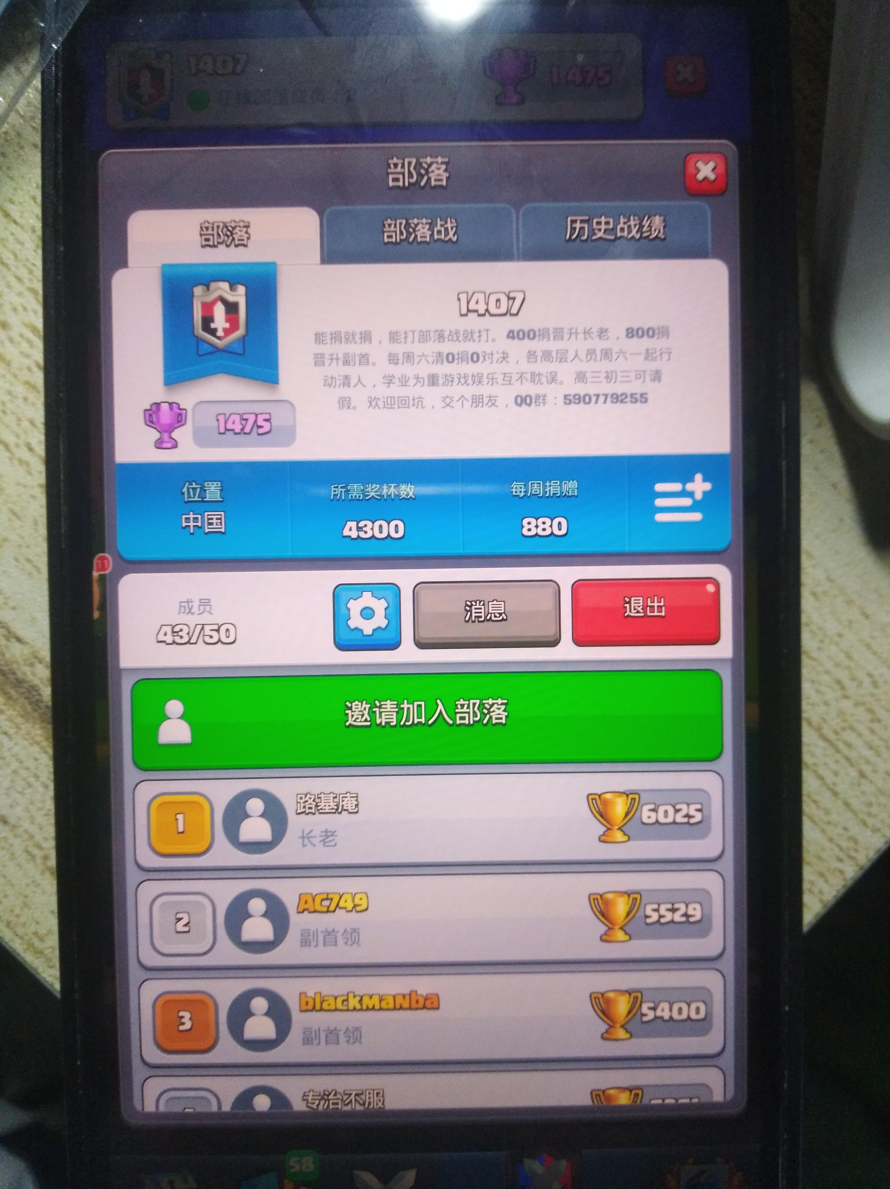 我们是刚建的部落,但有很多联赛伙伴,退出原来的部落自己建了一个,部落很活跃,详细部落规则可以进部落看部落链接:https://link.clashroyale.com/invite/clan/cn?tag=YLQ2RU9Y&token=sh2e4ntr&platform=kunlun-landing_page