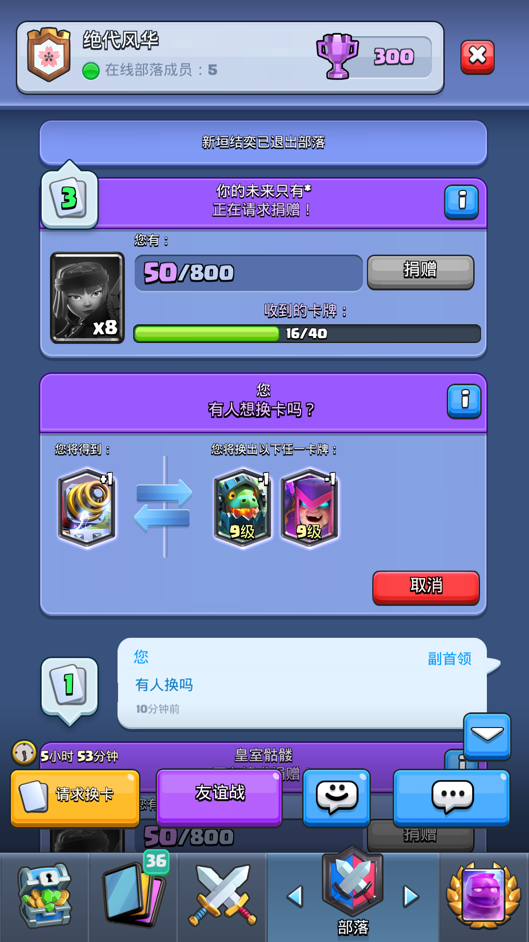 本部落:黑暗之殿,招每天可以打满4场部落战的玩家加入,本部落每周部落战第1,保拿传奇卡,没要求,只要每天打满4场部落战就行