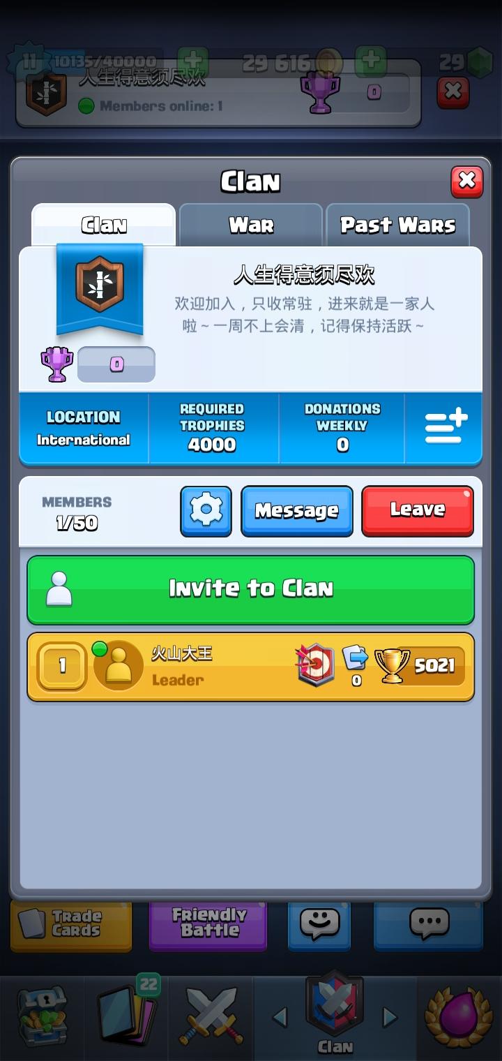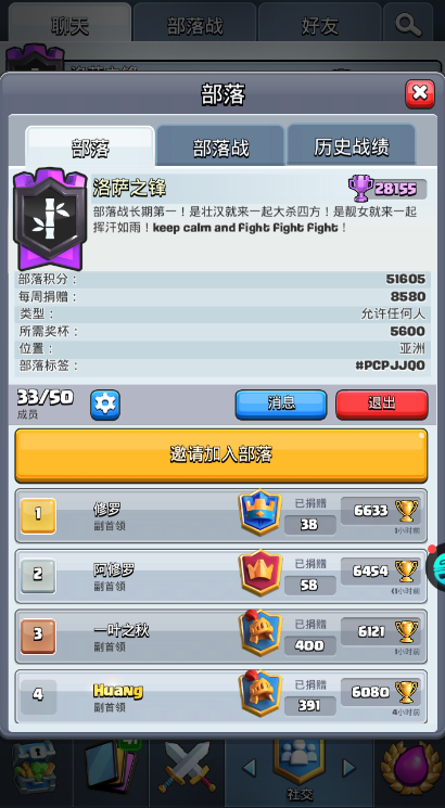 部落招人啦~如果你是常在线玩家,并且热爱皇室,就来加入我们吧!虽然现在只有我一个人,但是随着你们的加入,部落一定会越来越热闹的!部落名:人生得意须尽欢