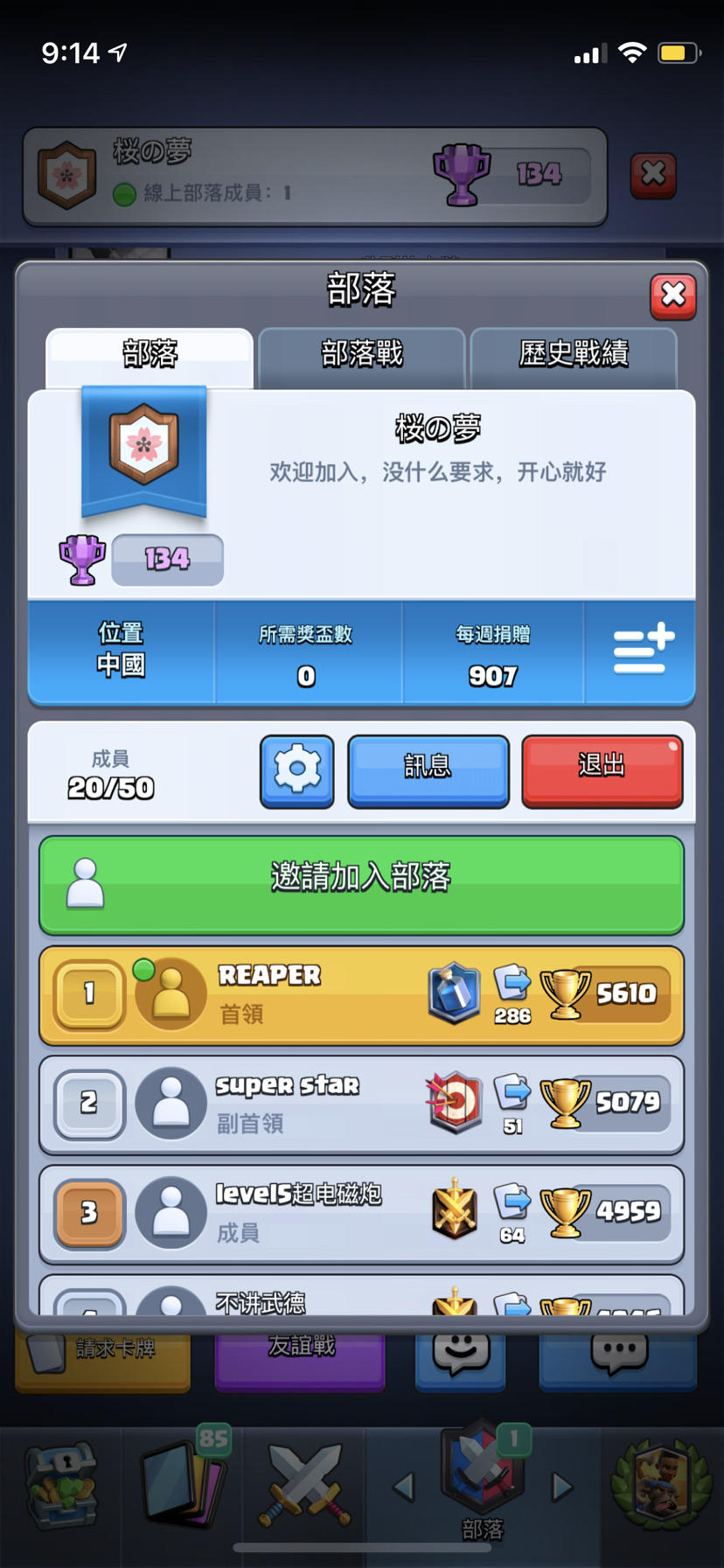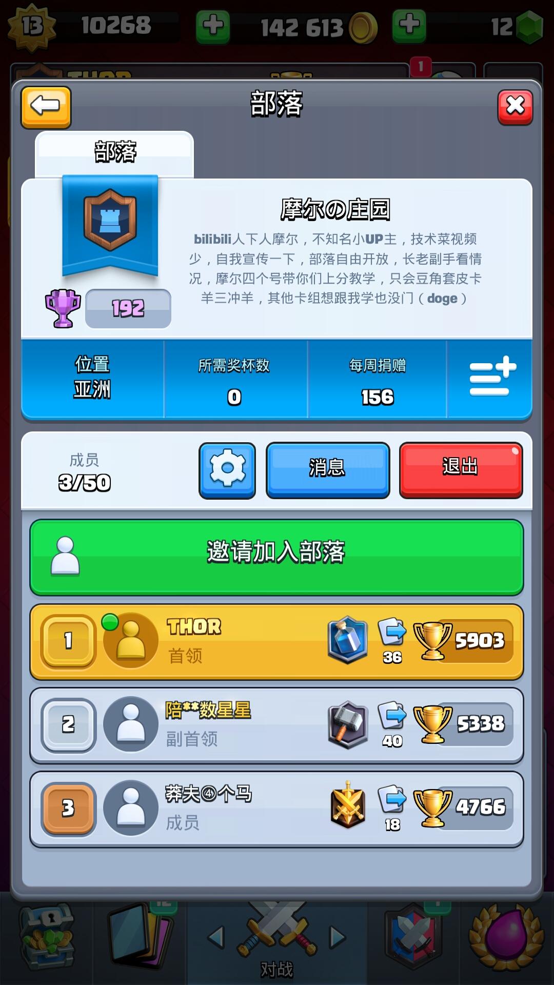 本部落暂时只有十人左右在积极打部落战,感觉白银已经是极限了,所以想找几个同号一起争取继续第一每周白嫖传奇卡