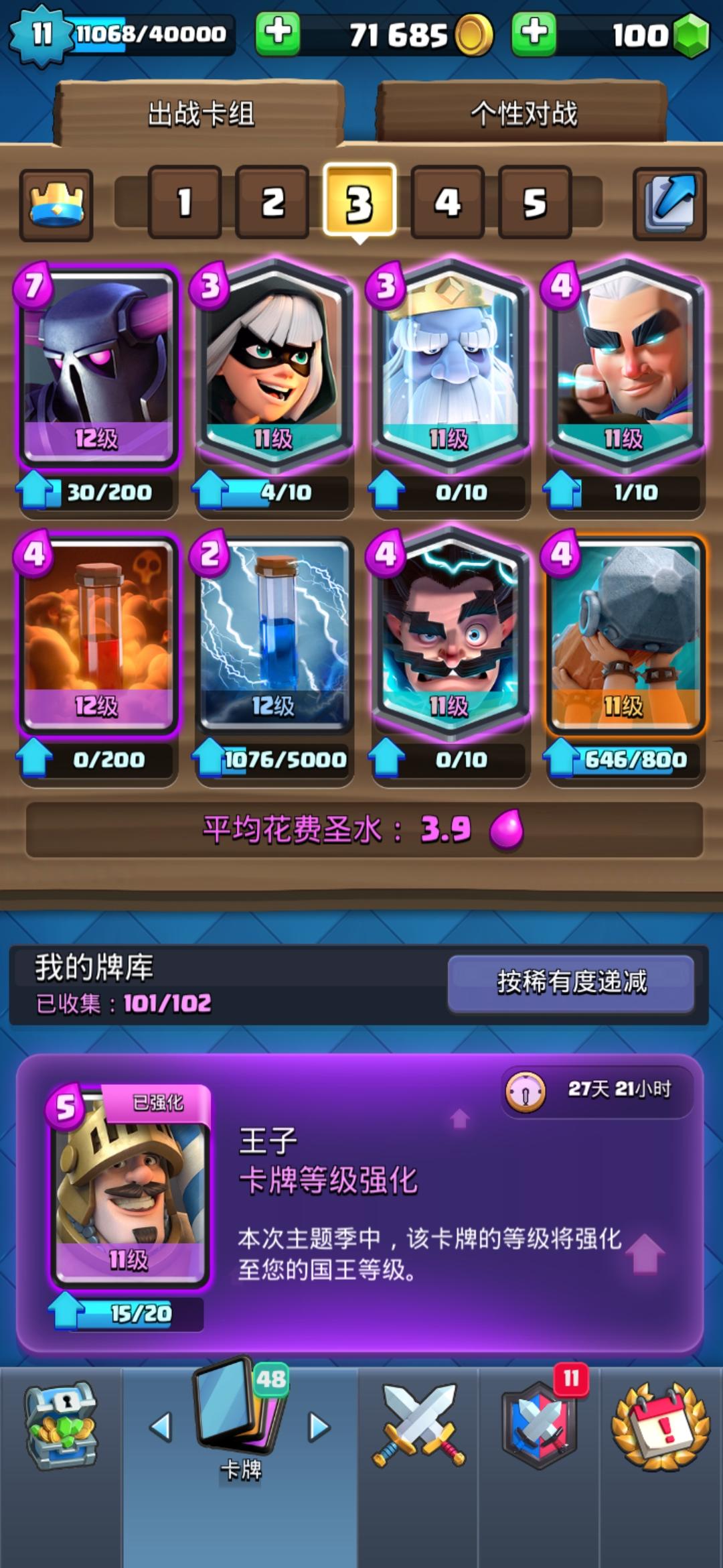 欢迎萌新大佬(爱打部落战就可以)加我部落:黑暗之殿,目前47人,本部落每周部落战第1,保拿传奇卡,前3周2天就到线,最后1周12小时到线,只要你每天打满4场部落战就可以加入,欢迎,本部落周娟卡20000.