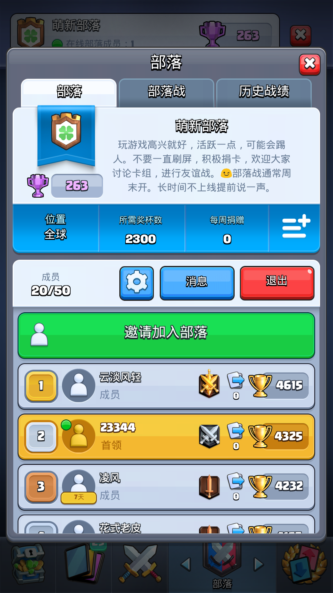 我又来发一遍啦,萌新部落招人😊😊😊,欢迎活跃的玩家加入,因为有很多广告,所以改成了申请加入,不过如果大家想加入可以留言,不论杯数多少,都可以同意哦。 谢谢大家。
