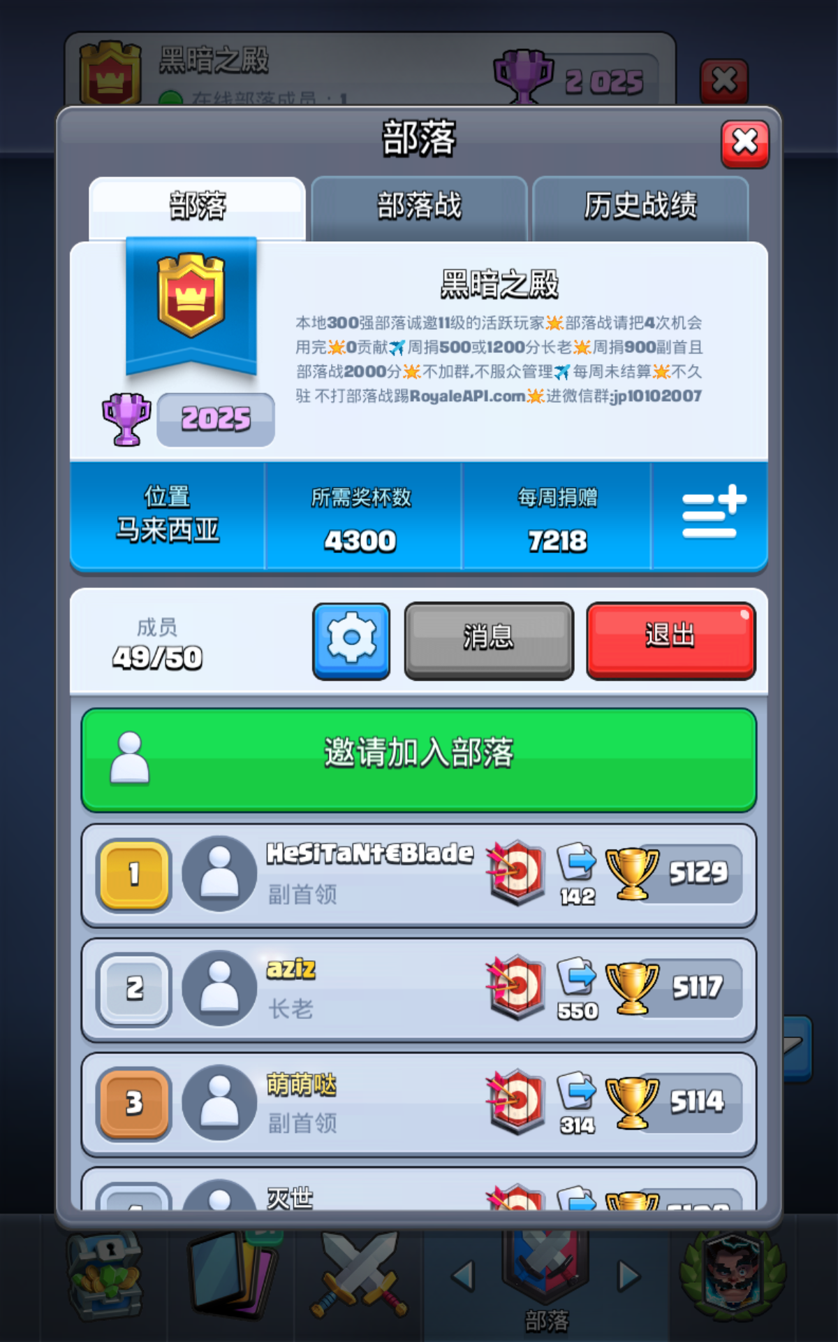 本部落招人,部落战周一到周三冲线,周不满500徽章踢人