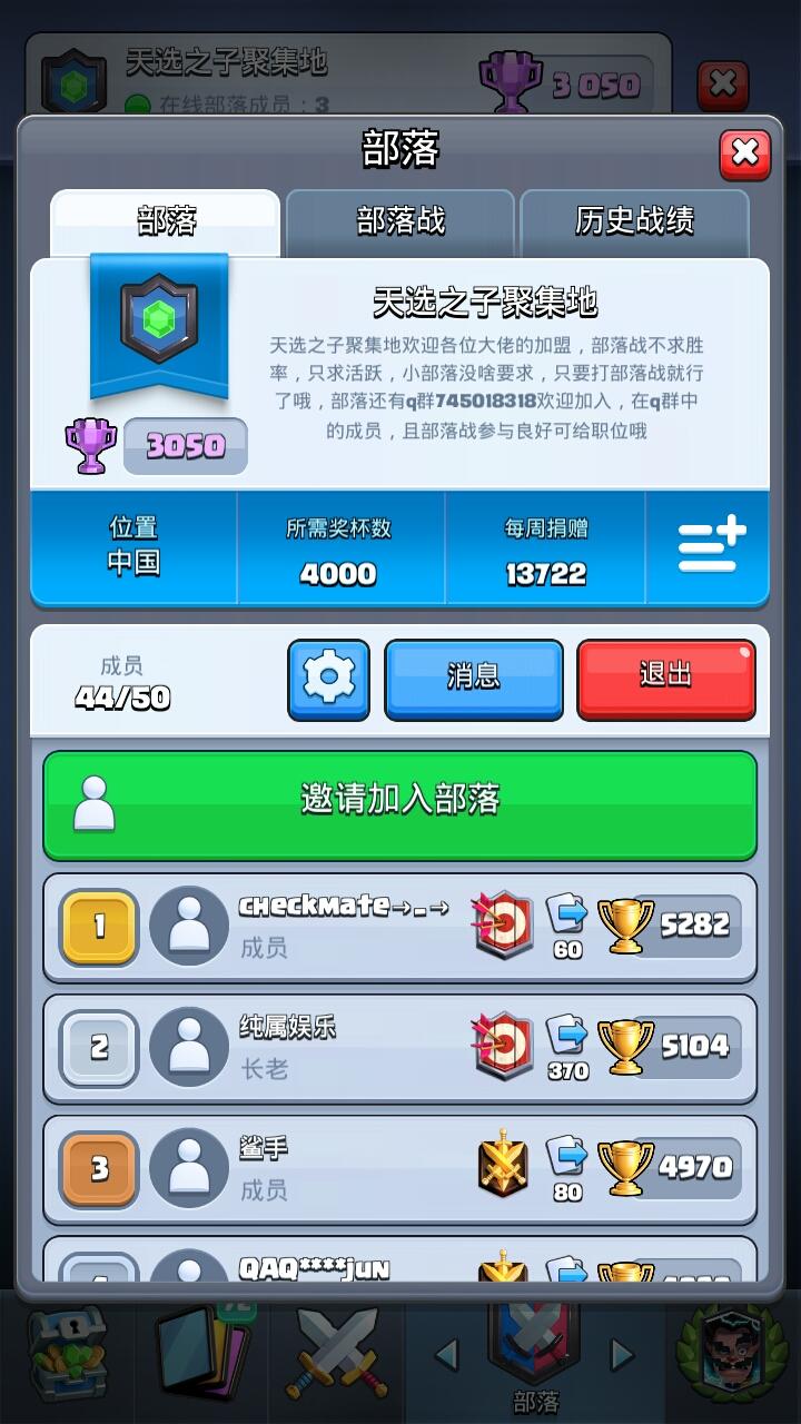 刚刚成立的分部无门槛欢迎大家哦 主部每周稳传奇第一如果部落战活跃每天能打满可以加 来的建议加下q群哦(主部必加)另有交流群欢迎大家加入