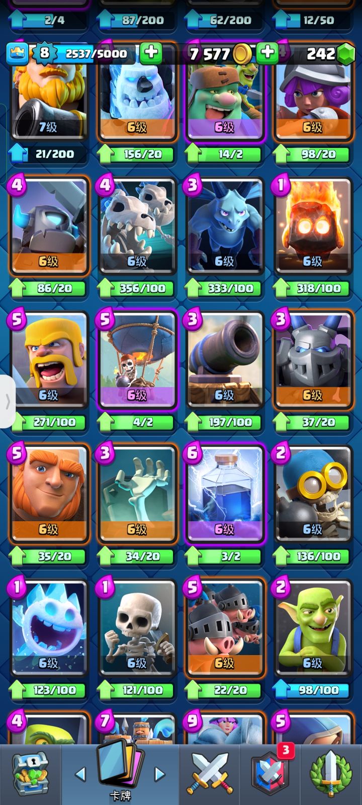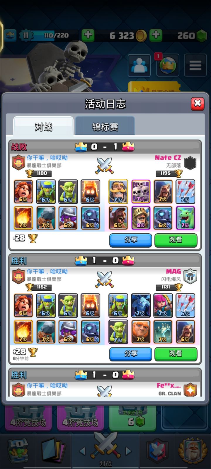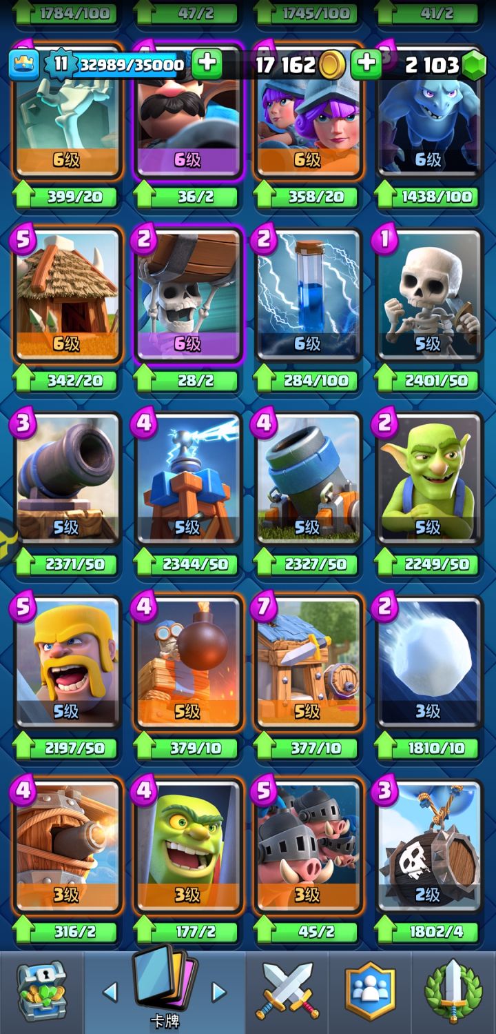 服了,对面平均三个史诗,还总有高竞技场的卡,(火豆改前好比是青春版万箭,改完就是青春版小闪,火豆加攻城锤对面一个骷髅海就给解了,我拿头打啊)