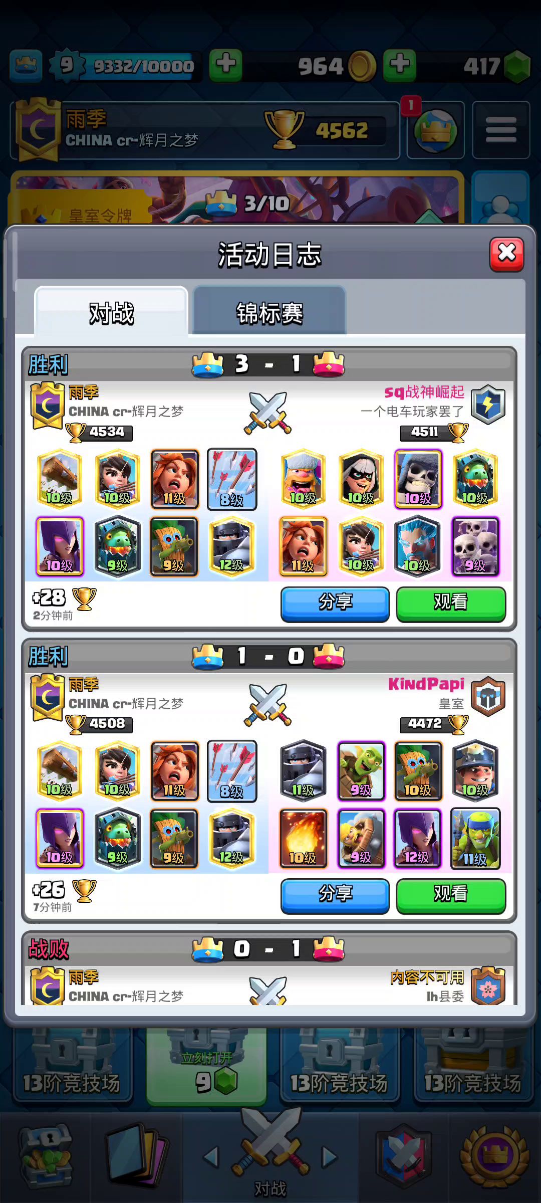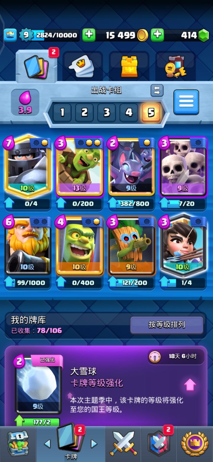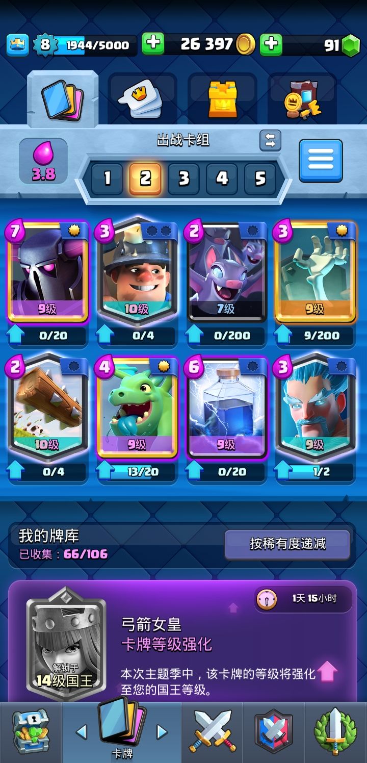 看到这个游戏还有萌新,所以推荐各位萌新去B站搜一下一个up,叫失落客,直接养真卡组,不要自己搭卡组了。还有要学会解卡,一些小操作要学习的,比如拉扯,利用国王塔,这些B站上也有反正这游戏的核心就是如何用自己手里的牌去解对面的牌,打出低费解高费,然后利用圣水差距打出进攻。还要学会转卡过牌,有时候你的卡组顺序并不是很好,这时候就要进行过牌杯数再往上,还得记牌,记住对面都下了哪些卡,以免对面把进攻核心又转上来如上,一个玩了5年的老玩家给的建议,写的有点乱,勉强看吧