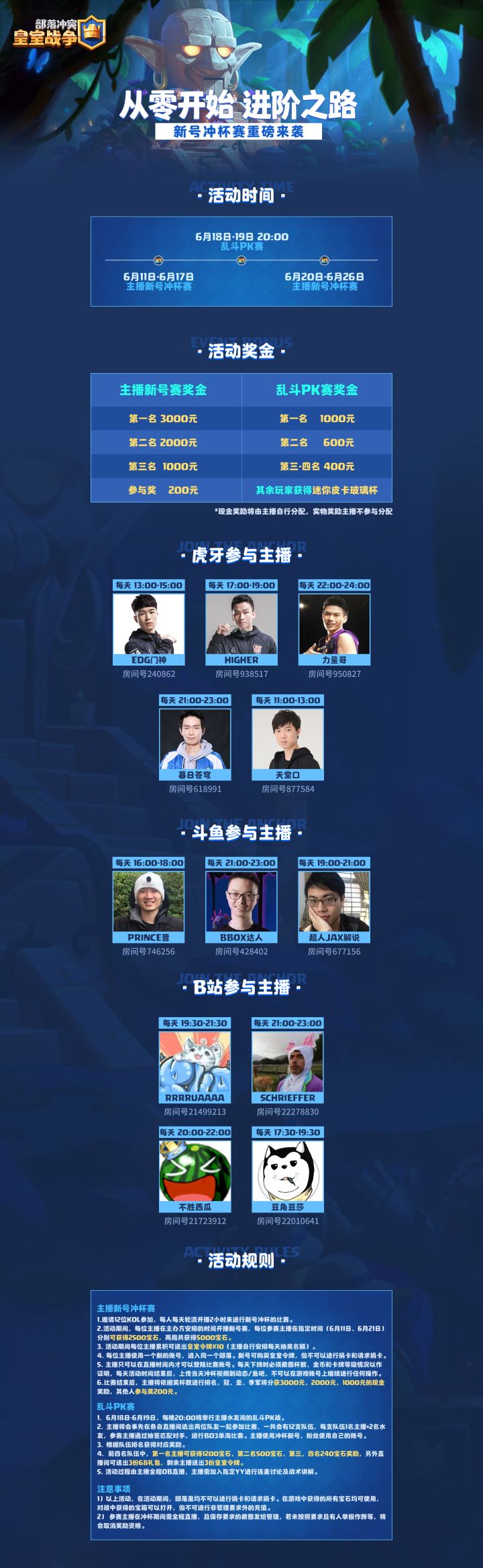 久违的新号冲杯赛重磅登场!即日起至6月26日,将有12位来自虎牙、斗鱼和B站的主播及UP主加入新号冲杯赛,并率水友们进行乱斗PK!在这场技术和智慧的较量中,谁会是最终赢家呢?点击下方配图即可查看详细活动规则和注意事项。