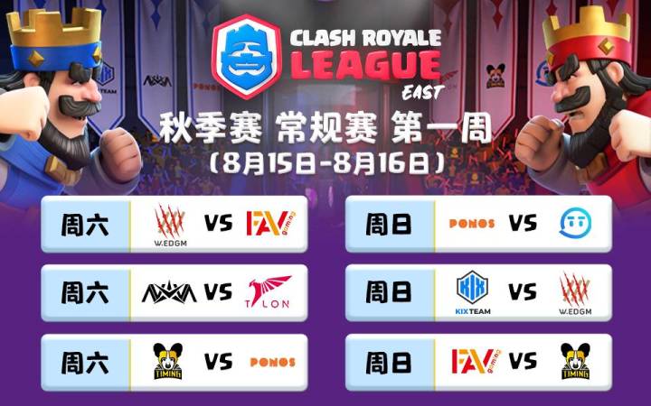燃爆金秋,剑指全球!今日17:00,休战3个月之久的东方赛区将重燃战火,CRL秋季赛蓄势待发。八支战队、39名职业选手将向超百万的总奖金以及上海全球总决赛的名额发起冲击。今晚,三场重量级对决将拉开新赛季的战幕,你准备好了吗?秋季赛常规赛共持续九周,常规情况下每周六、周日17:00开战,每个比赛日三场对决。在本周的6场对决中,东方八强将悉数登场,W.EDGM、FAV、TIMING和PONOS