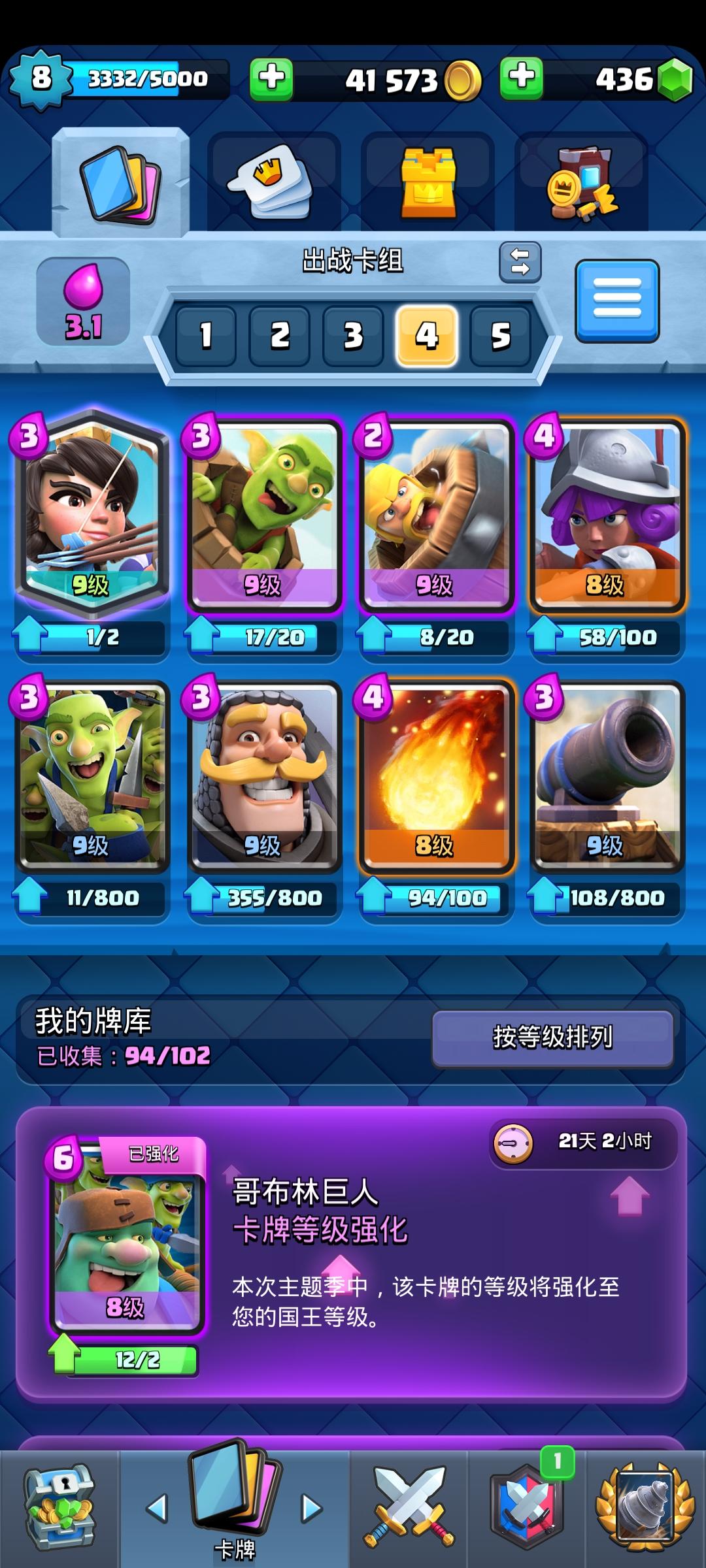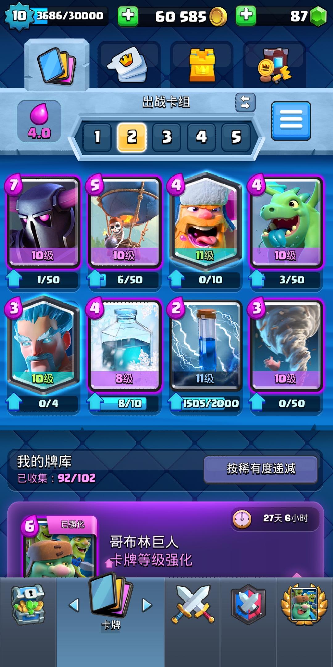 这卡组怎么说,更新了一直卡在四千六,打不过啊,换一套有没有跟这套比较类似的,养卡不舍的啊,或者来一套可以让我继续上分的也行,想不换但是感觉不换不行,全是紫的,传奇,就一个小电是普通,养卡费劲