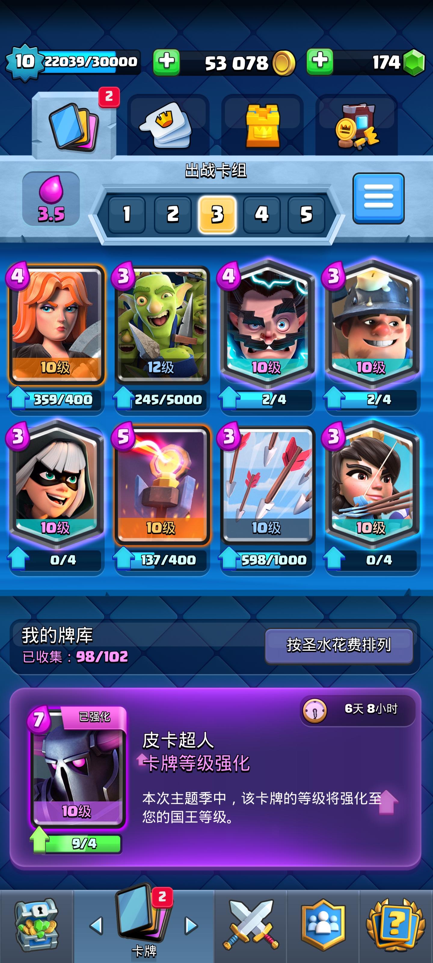 官方,我好奇一下,皇室令牌是不是下个赛季才会变(指的是34级那里为什么没有传奇的转换卡),还是说我国王塔等级不够。这个月刚开的号所以等级不够