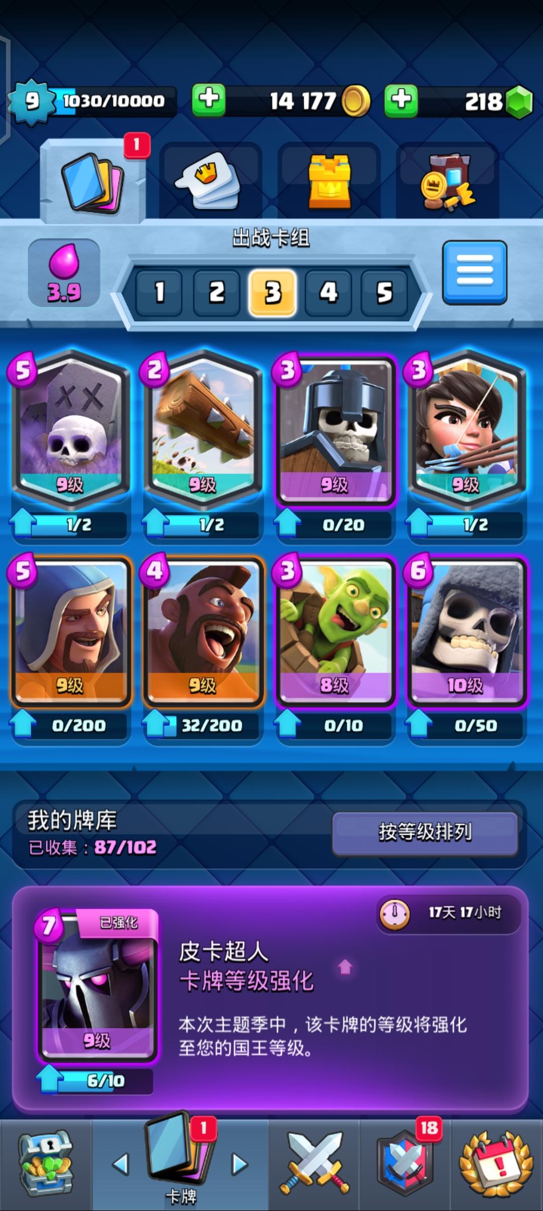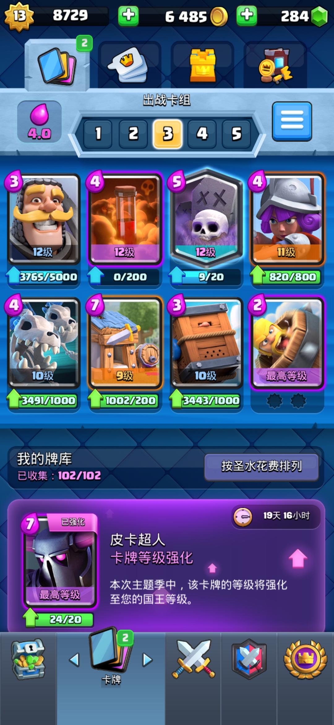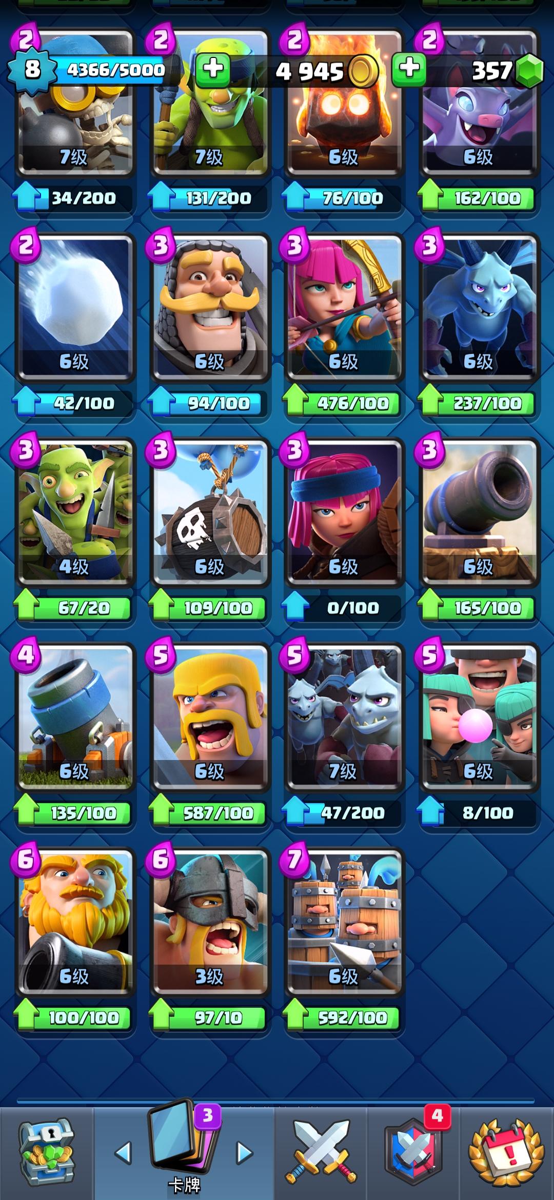 墓园卡组总是变种,烦死了都。本来辛辛苦苦养了一套经典蓝胖冰墓,结果半路又杀出来一个地狱塔蓝胖冰墓,想养胖墓,结果女巫婆婆又加强,玩个香蕉皮球憨憨锤(╯°Д°)╯︵┴┴
