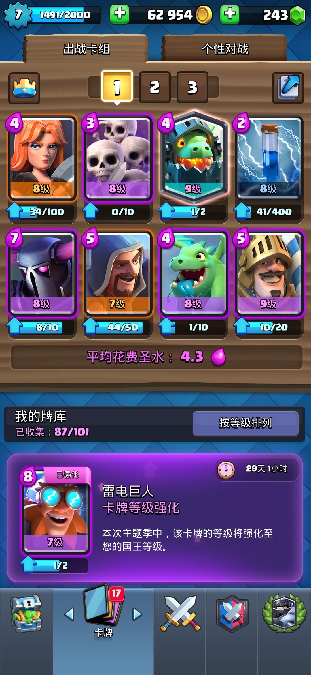 刚玩两周,7级4200杯再也上不去了,求大佬帮忙组套卡组,最好再教一下教程,拜谢