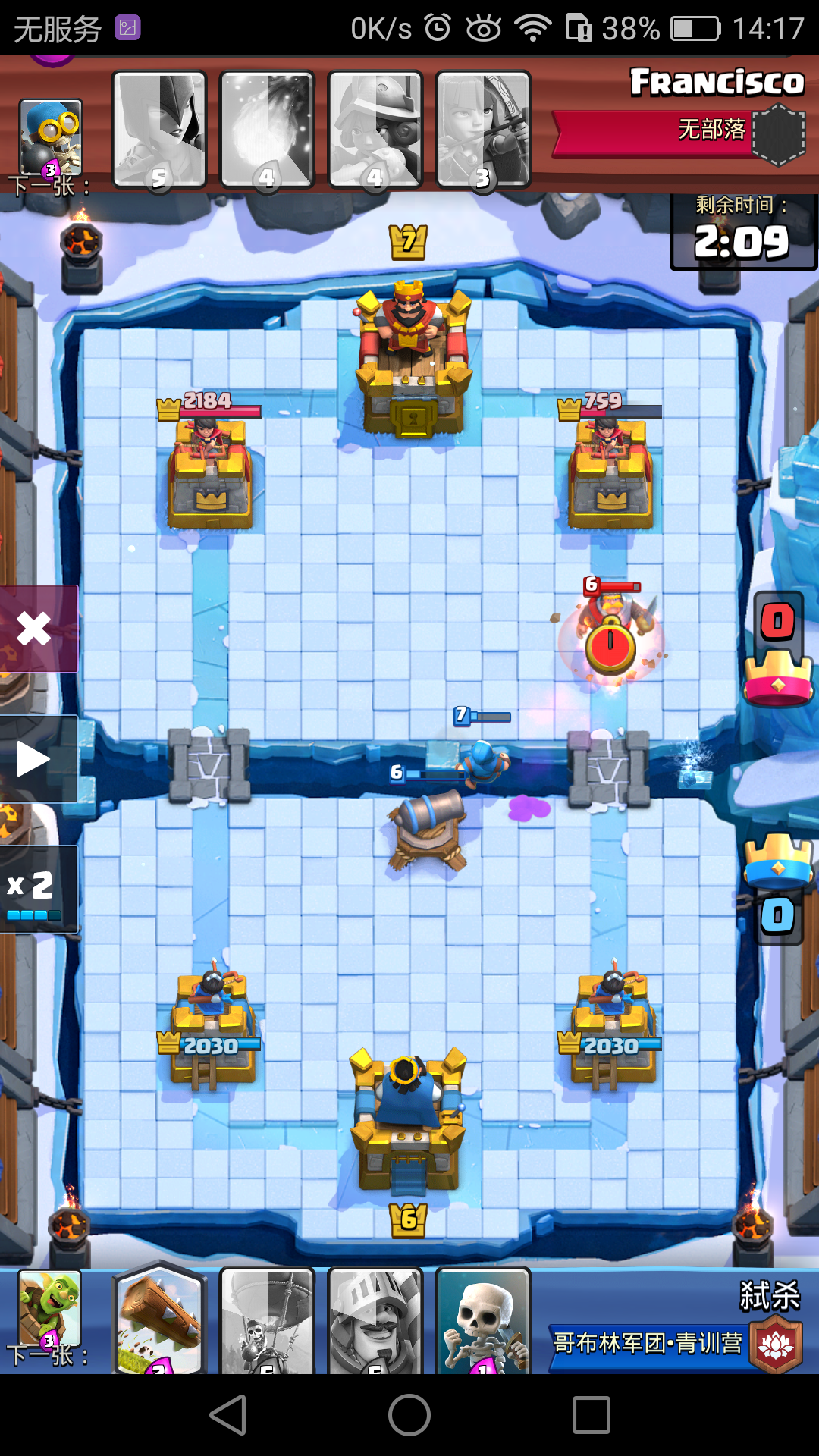 我点进了一把极为平常的比赛啊对面这个11级的小朋友来当守门员他上来就是一个偷袭,来偷袭来骗我这个4.9的,魔改狂暴电车我大意了啊,没有闪他冲着我右边的塔,他就来了一炮,瞬间就只剩1600血了我一个狂暴黑王加法师偷袭啊,它就变成了1000血了按传统的狂暴电车要以和为贵,就不打了但我可不是传统的啊,我继续扔狂暴电车和超级骑士他说让我1个超级骑士加一个狂暴电车来折他一个地狱塔和电车唉他一个