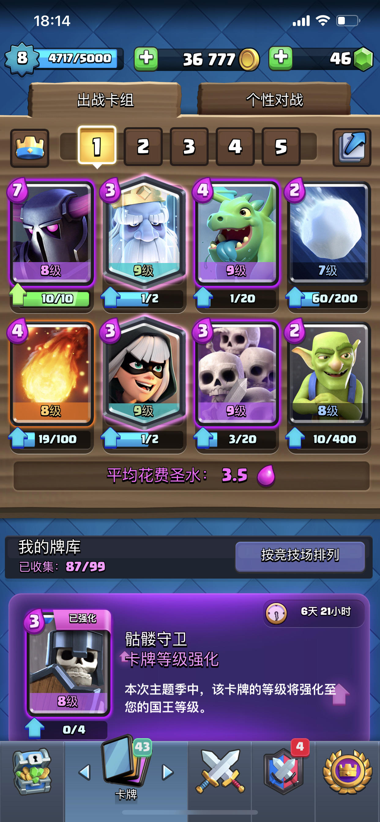 想请各位大哥大姐帮忙配个卡组 不知道养什么卡 自己瞎配打到4400上不去卡了几天了