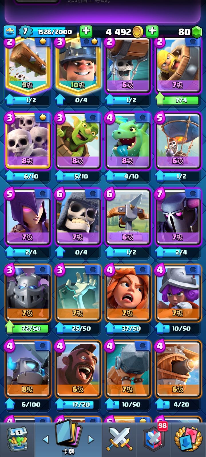 这套研究出来的,卡组用起来挺猛,但是骷髅巨人被削了现在炸弹伤害不行,以前一个骷髅巨人随便,现在不太行,能换成啥卡啊😅