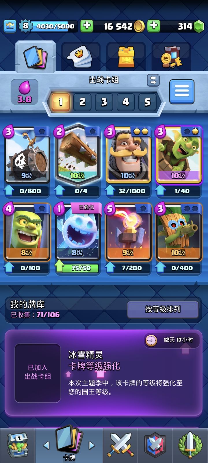 想着国服更新了想继续玩玩,但一直卡在4200到4300上不去,也不知道该养哪一张卡,求个卡组。