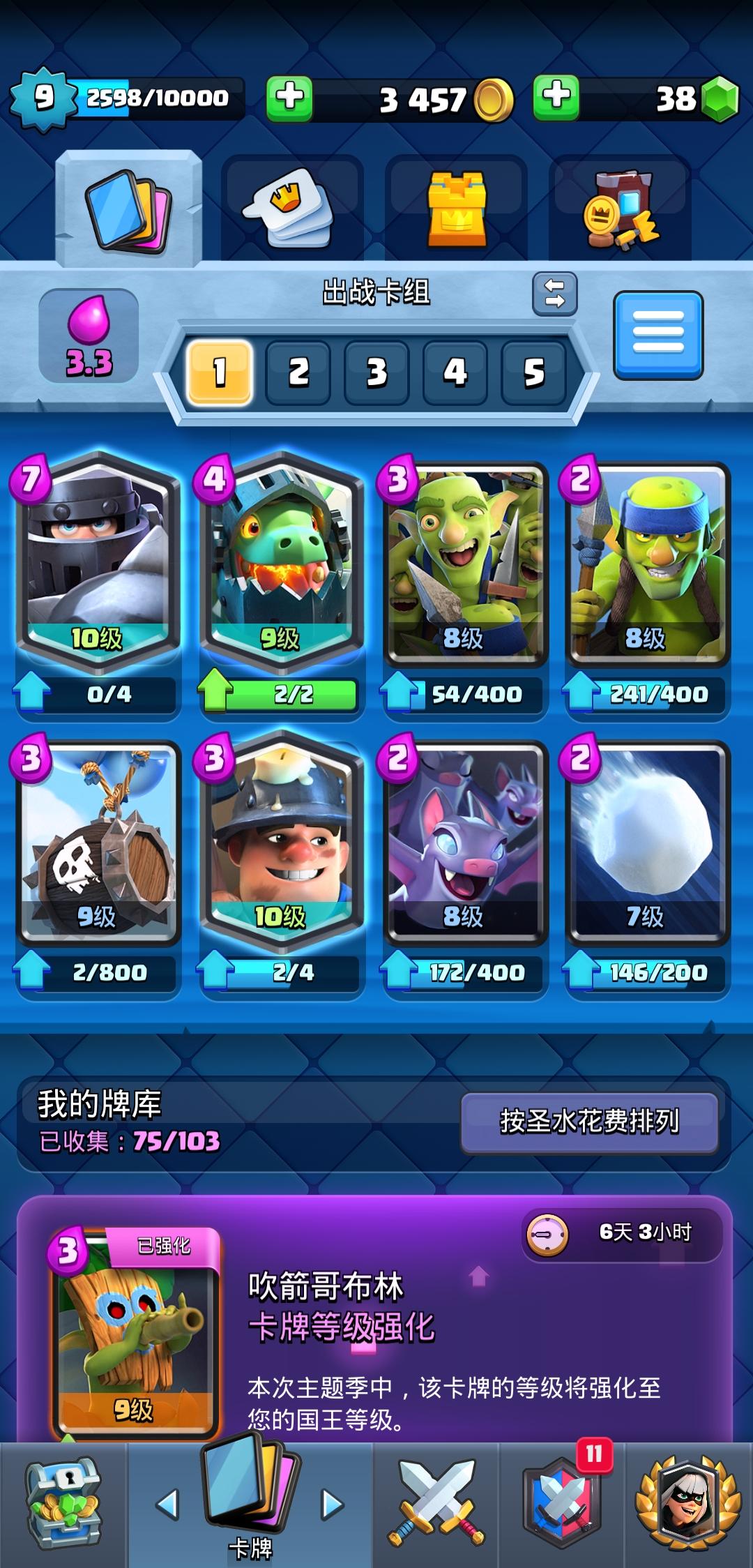 这套卡组打到5000杯就乏力了,求改进