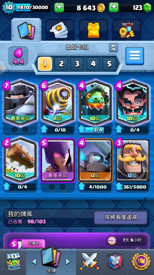 帮我看看这个卡组怎么样,鄙人当年玩了一个多月,由于现在魔法道具,导致卡组等级被碾压,目前4200多杯
