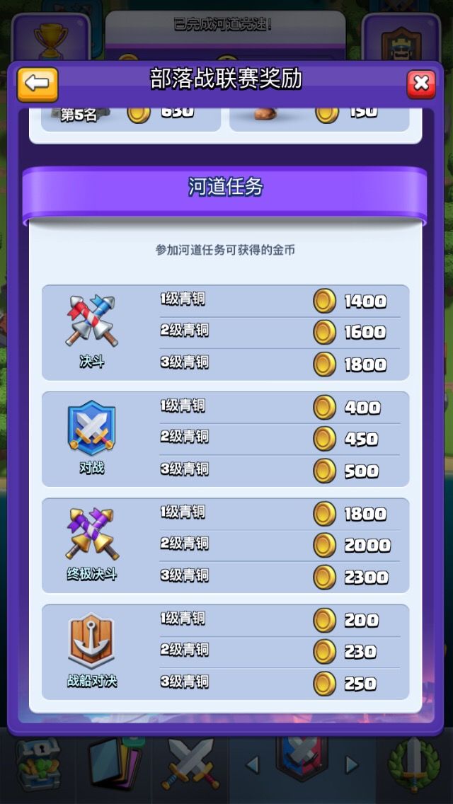 千呼万唤始出来,部落战2总算在8月最后几天出了,不知道在过去的一周内大家的体验怎么样?体验很重要,不过对广大玩家来说,奖励也很重要。和部落战1代一样,即使在部落战中输掉比赛,也同样能获得金币奖励。 首先让我们来看看奖励机制:可以看出,决斗(bo3)的各阶段奖励都高于多战(bo1)(终极决斗和PVE不作为本帖介绍重点),即使打满三场输掉比赛只拿到一半金币,也仅仅和bo1输2胜1的金币差100,更何