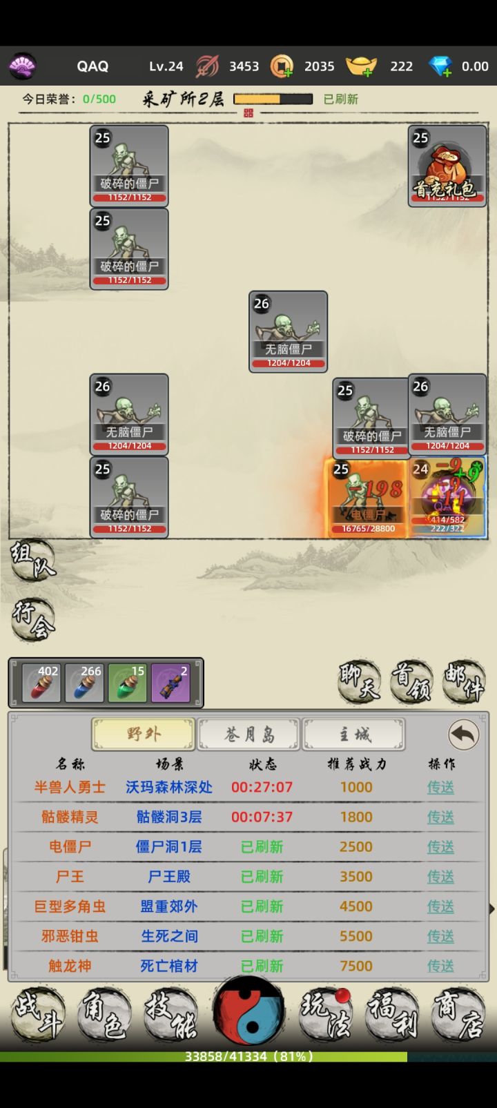 龙战八荒游戏界面及操作修改建议。