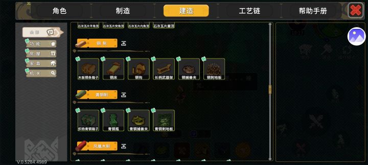 十二天过主线时,地图刚好有雪地,困难模式小队能硬刚熊,由于来回找不到部件,浪费了大量时间,顺便把雪地屠了两轮,准备升级装备(没养NPC的情况下,实测高效) 第一天造完6X6,全铜工具。快速跳过任务,只采集当前所需资源。直接燧石刀砍鸡王,草和麻只切割(困难难度记得保存,注意走位,一般一到两次就过了)搞完造镐子敲铜矿,配套设施拉好。边烧矿边采集资源扩家,石头搭配平顶房子省材料(可以先一面墙,