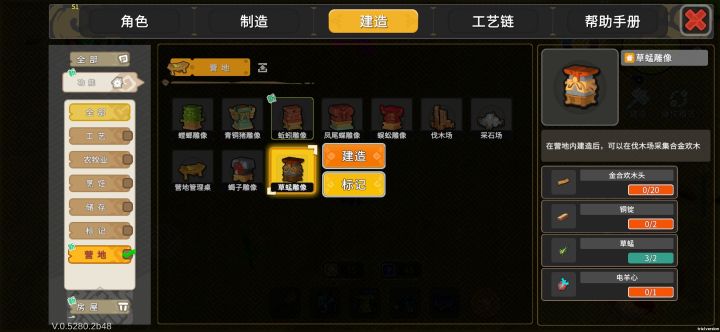 又玩了两天重新写一份攻略开局:按照指引走一直到打鸡霸,这个时候在那边找亚麻,先做好捕虫网,还有亚麻包,多存点亚麻,包括亚麻根也搞一些注意开头建房子的时候不用建多大,因为后面有营地之后你没必要带着营地走,自己随身的屋子可以用质量好一些的材质,不过开头先用好获得的材料凑合后面见完张玉优先去搞土地庙封印,解除完封印开完营地管理桌,直接在土地庙附近做营地关于伙伴,你如果把他拉入战斗状态的话是可以看