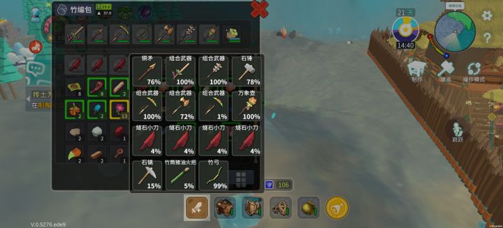 战斗方面:在打斗的时候,无论是鸡还是牙人,我在挥舞攻击的时候容易打空。边打边移动的时候速度更慢。然后感觉弓箭不是很有用。背包:背包格数真的太少了,新建的一些武器还有装备也没办法叠加。