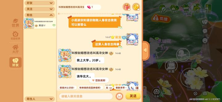我看好多人昵称后面还打了括号写了好多话比如心情、游戏状态、找搭子求交易什么的,完全可以写在简介里方便社交。还有我想问问拉黑、私聊权限、取消粉丝、花园天气系统这些功能啥时候能上线啊😴