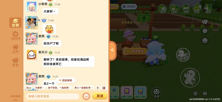 忙着种菜呢,突然瞄了一眼公屏有人吵架?好奇去看了一下,这个叫柴天川的人不知道什么原因突然莫名其妙辱骂扫射公屏其他玩家😅真的很影响观感,有些人开始怼他也被骂了。。真求求快上线拉黑和聊天权限功能吧,真的很怕哪天不小心惹到哪个熊孩子跑私信骂我#小恐龙派对 #发现好游戏 #游戏日常 #游戏杂谈 #单机游戏 #游戏攻略
